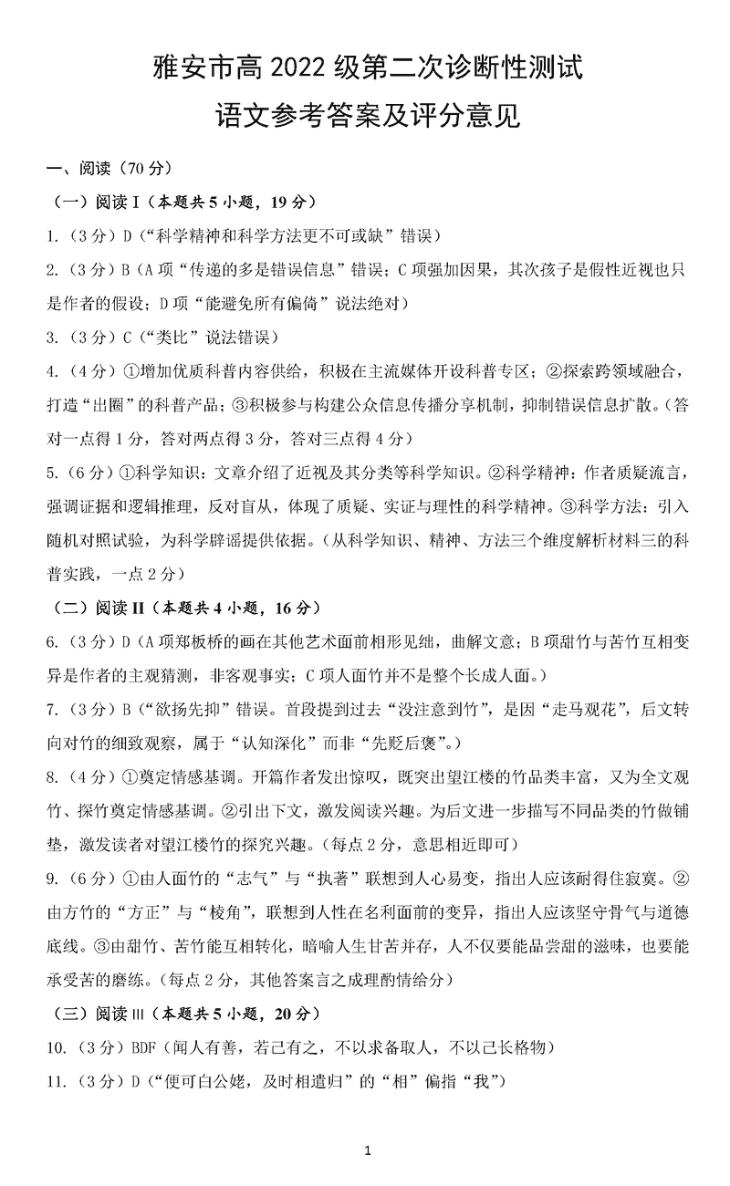 雅安市2025届高三下学期第二次诊断性语文考试已于近日开考,为方便考生考后及时查看考试情况,查漏补缺、弥补不足,本文整理了试题答案解析相关信息!