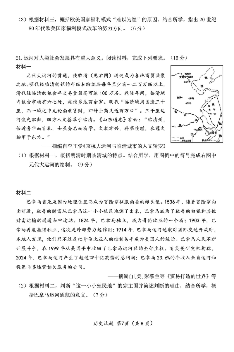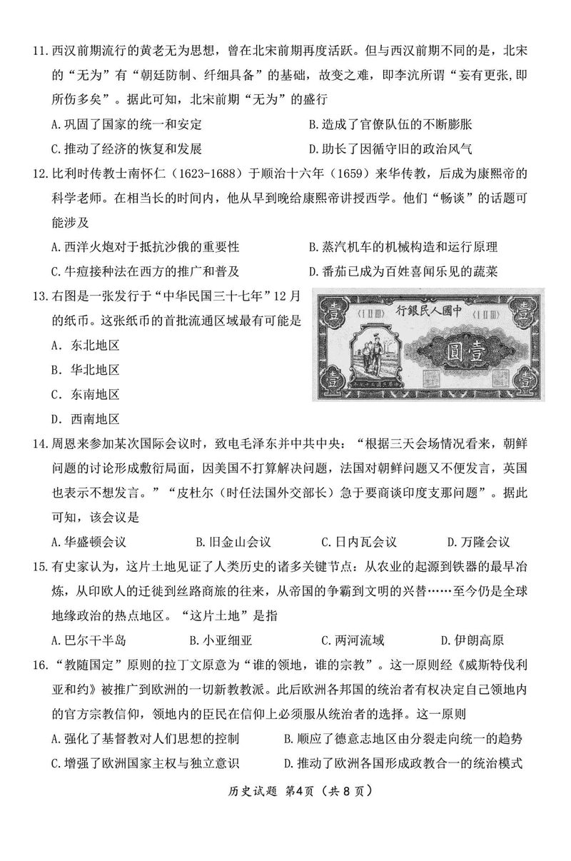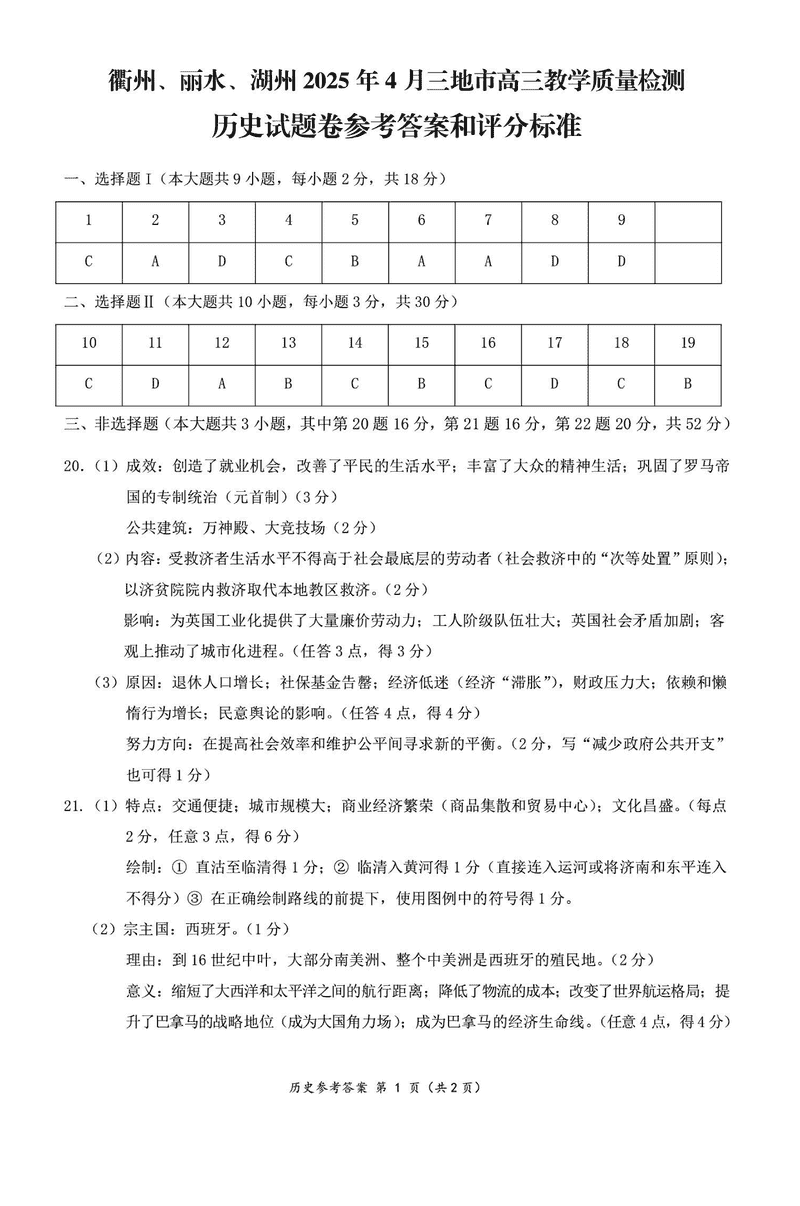 衢州、丽水、湖州三地市二模2025年4月高三教学质检历史试题及答案