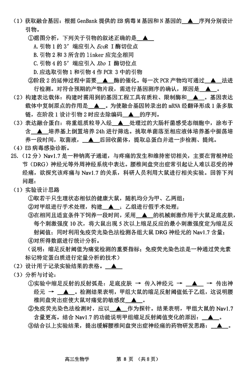 衢州、丽水、湖州三地市二模2025年4月高三教学质检生物考试已于近日开考,为方便考生考后及时查看考试情况,查漏补缺、弥补不足,本文整理了试题答案解析相关信息!