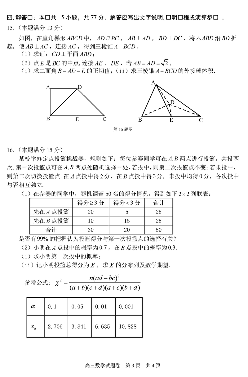 衢州、丽水、湖州三地市二模2025年4月高三教学质检数学考试已于近日开考,为方便考生考后及时查看考试情况,查漏补缺、弥补不足,本文整理了试题答案解析相关信息!