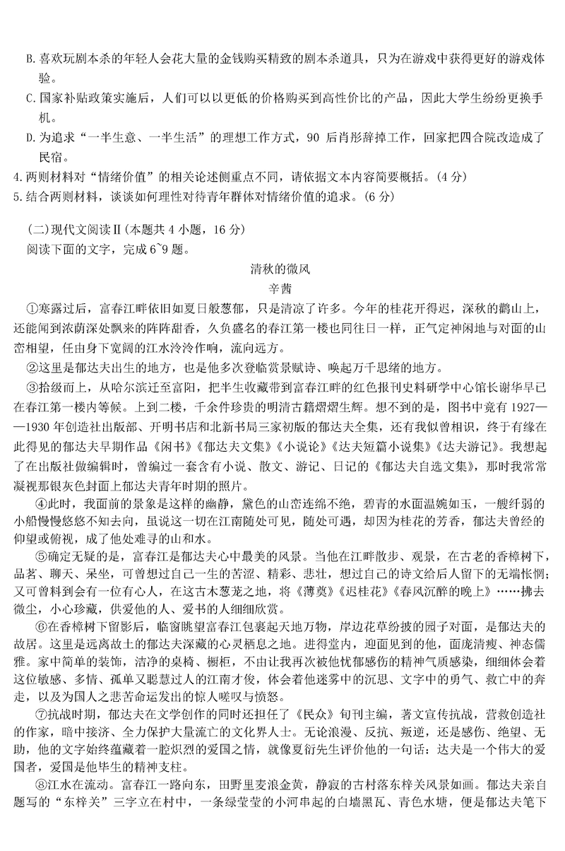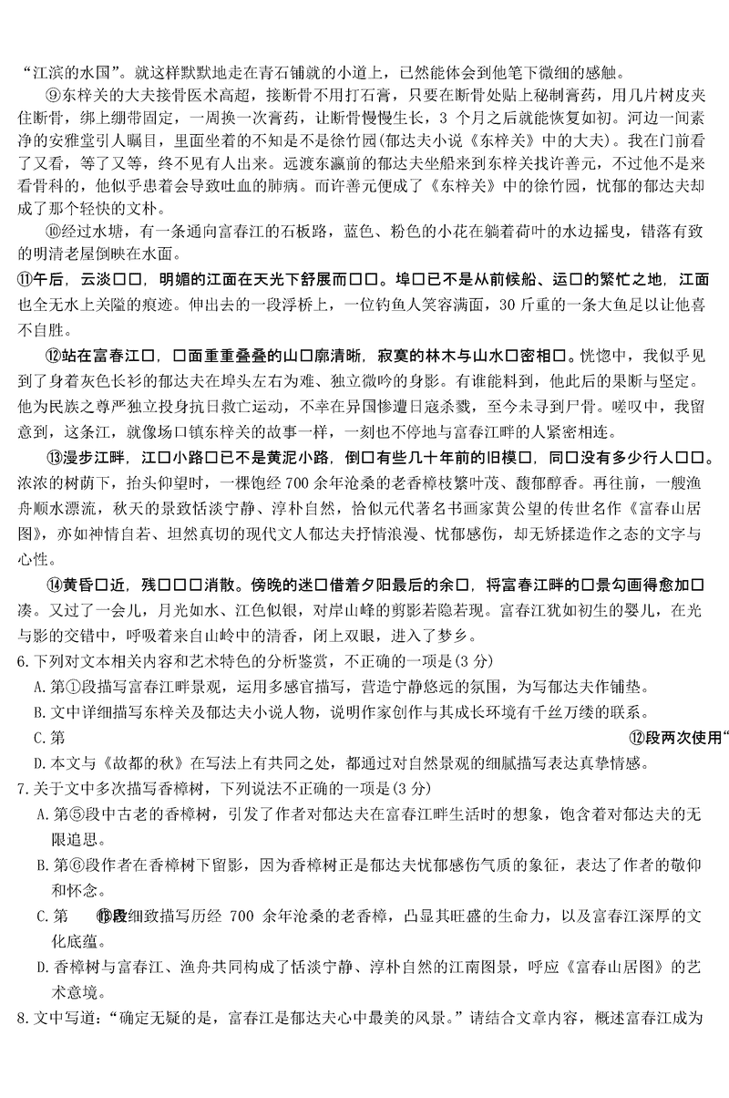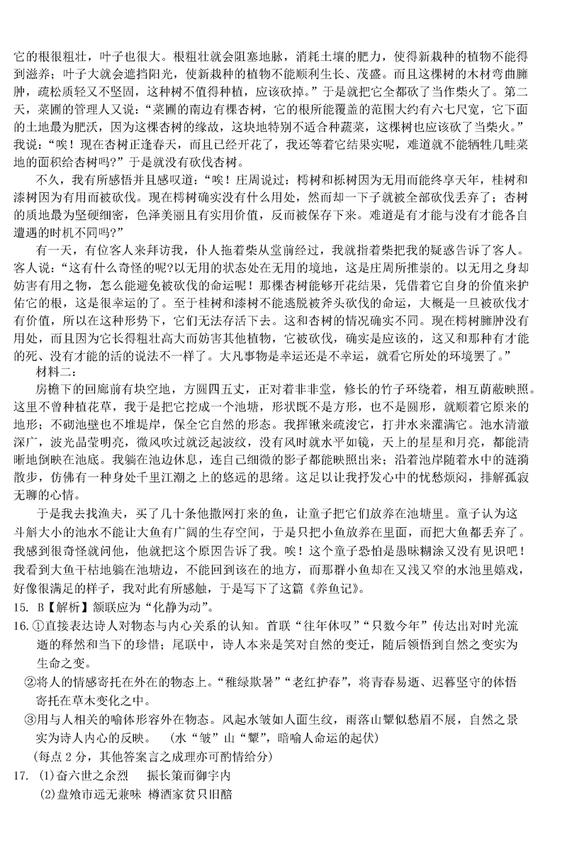 衢州、丽水、湖州三地市二模2025年4月高三教学质检语文试题及答案