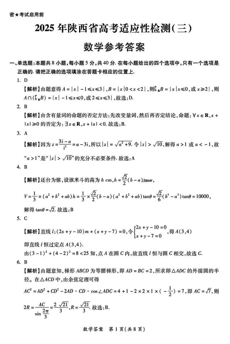 陕西 数学试题