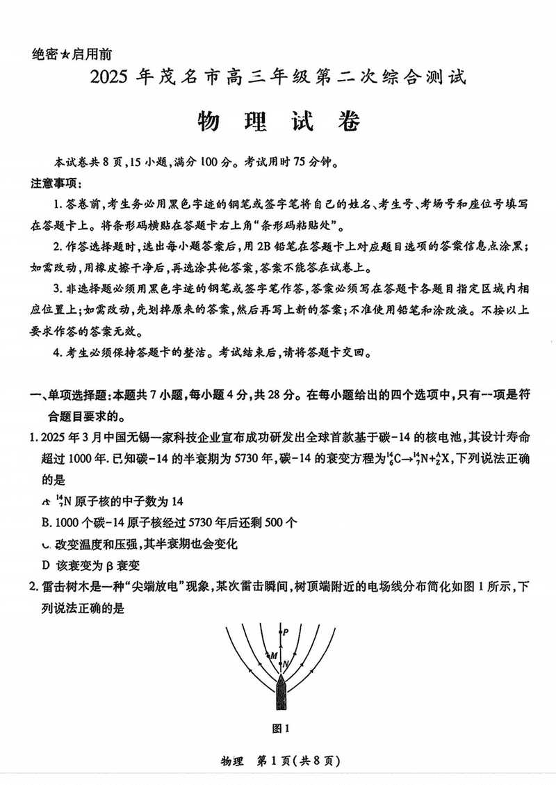 茂名二模2025年高三第二次综合测试物理试题及答案 时间:2025-04-15 广东 理综试题 茂名二模2025年高三第二次综合测试物理考试已于近日开考,为方便考生考后及时查看考试情况,查漏补缺、弥补不足,本文整理了试题答案解析相关信息! 汇总:茂名二模2025年高三第二次综合测试试题及答案汇总 物理试题及答案解析