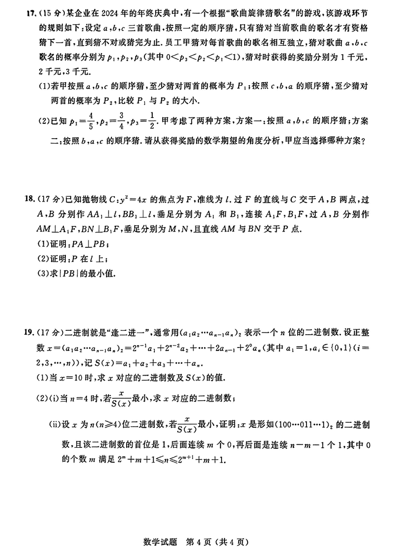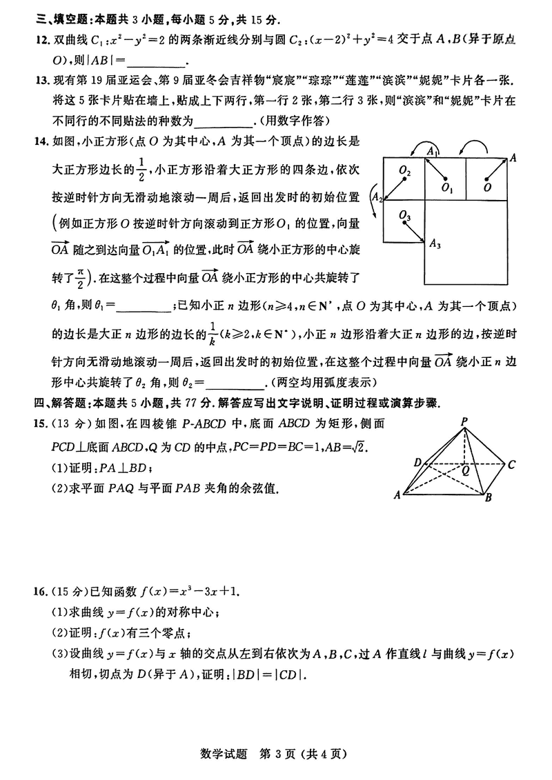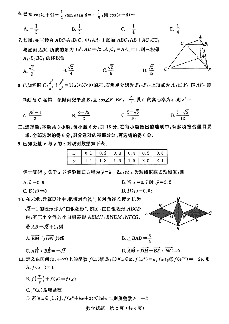 大教育山东联盟2025届高三质量检测第二次联考数学试题及答案