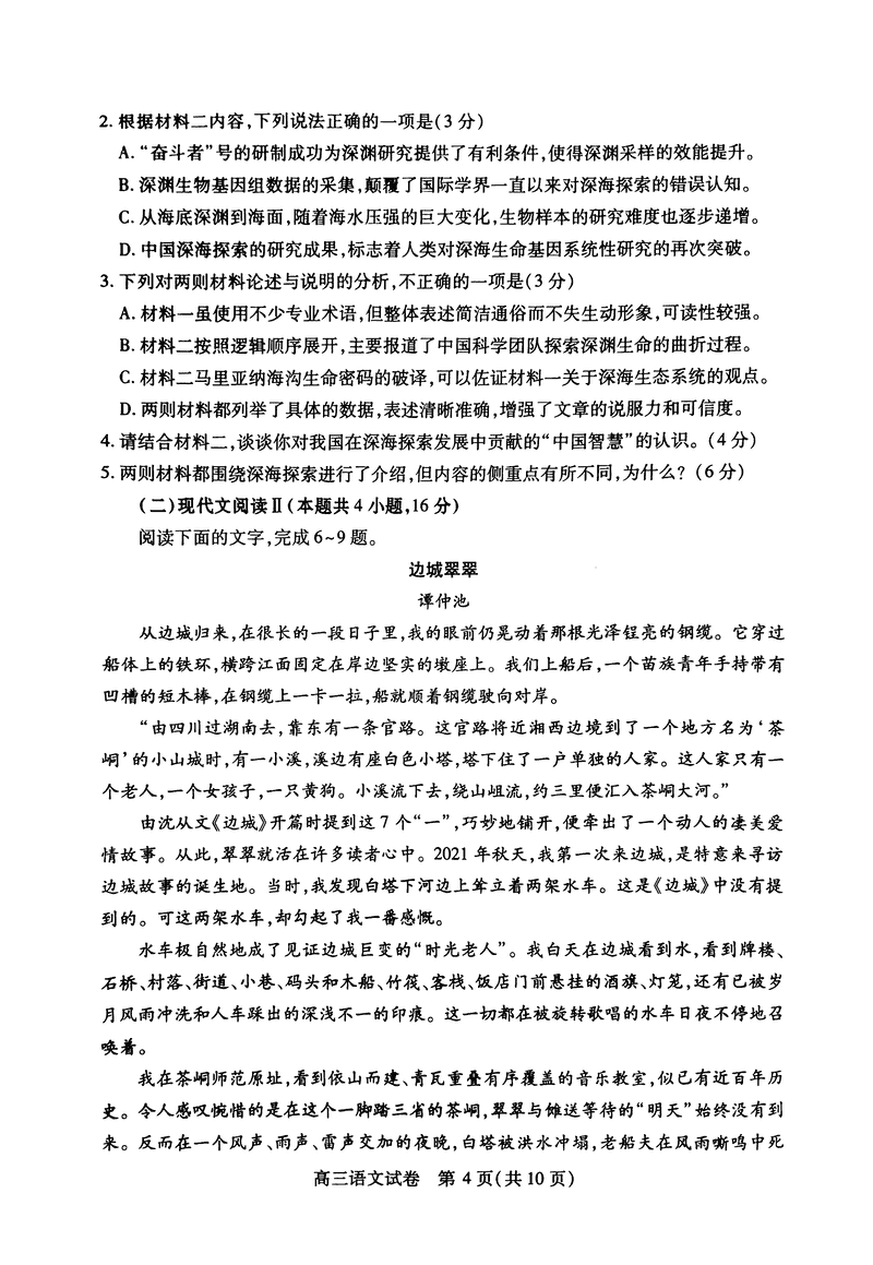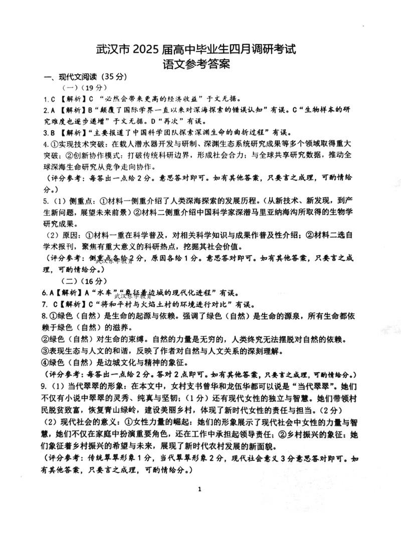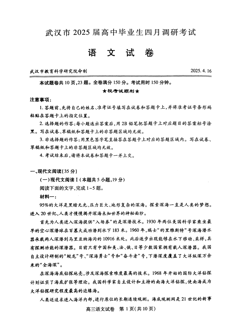 武汉市2025届高中毕业生四月调研语文试题及答案 时间:2025-04-17 湖北 语文试题 武汉市2025届高中毕业生四月调研语文考试已于近日开考,为方便考生考后及时查看考试情况,查漏补缺、弥补不足,本文整理了试题答案解析相关信息! 汇总:武汉市2025届高中毕业生四月调研考试试题及答案汇总 语文试题及答案解析
