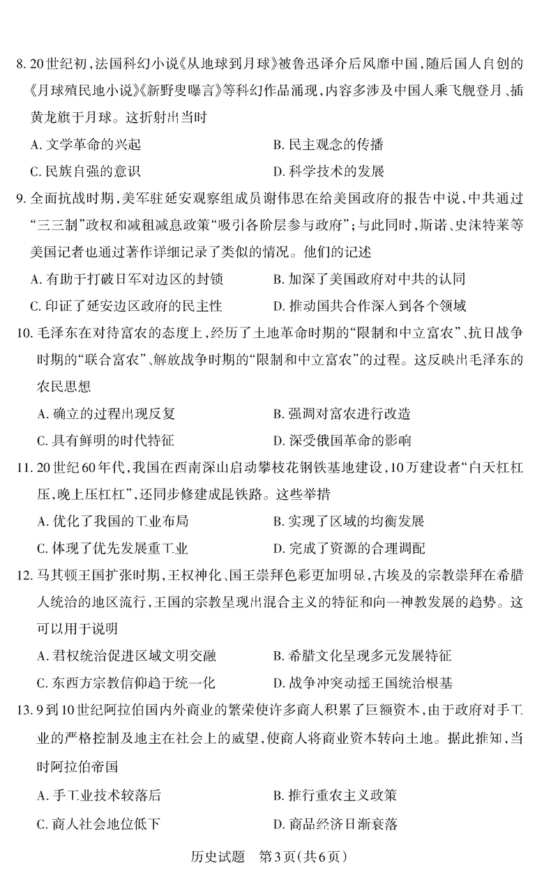 山西二模2025年高三适应性测试冲刺卷历史试题及答案