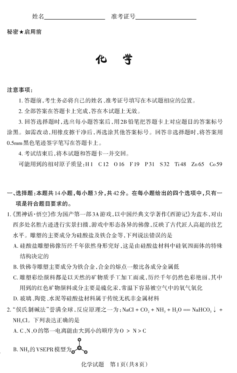 山西省二模2025年高三适应性测试冲刺卷化学考试已于近日开考,为方便考生考后及时查看考试情况,查漏补缺、弥补不足,本文整理了试题答案解析相关信息!