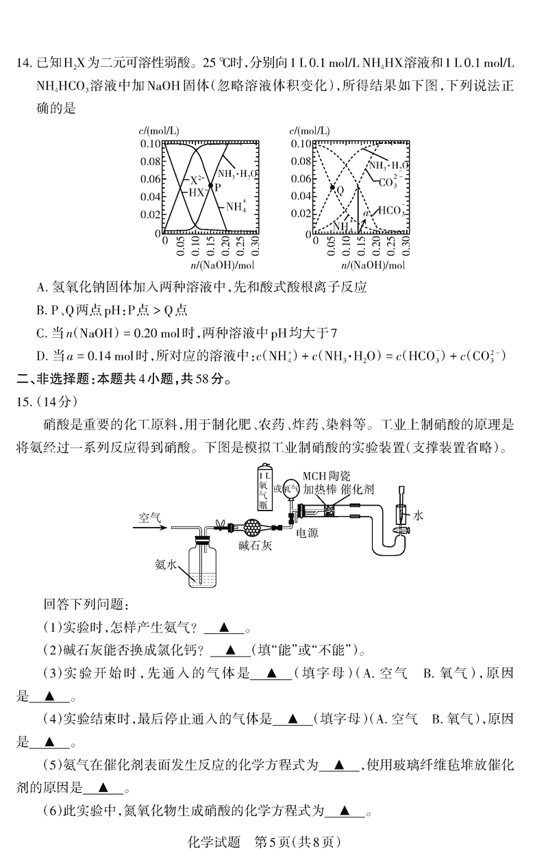 山西二模2025年高三适应性测试冲刺卷化学试题及答案