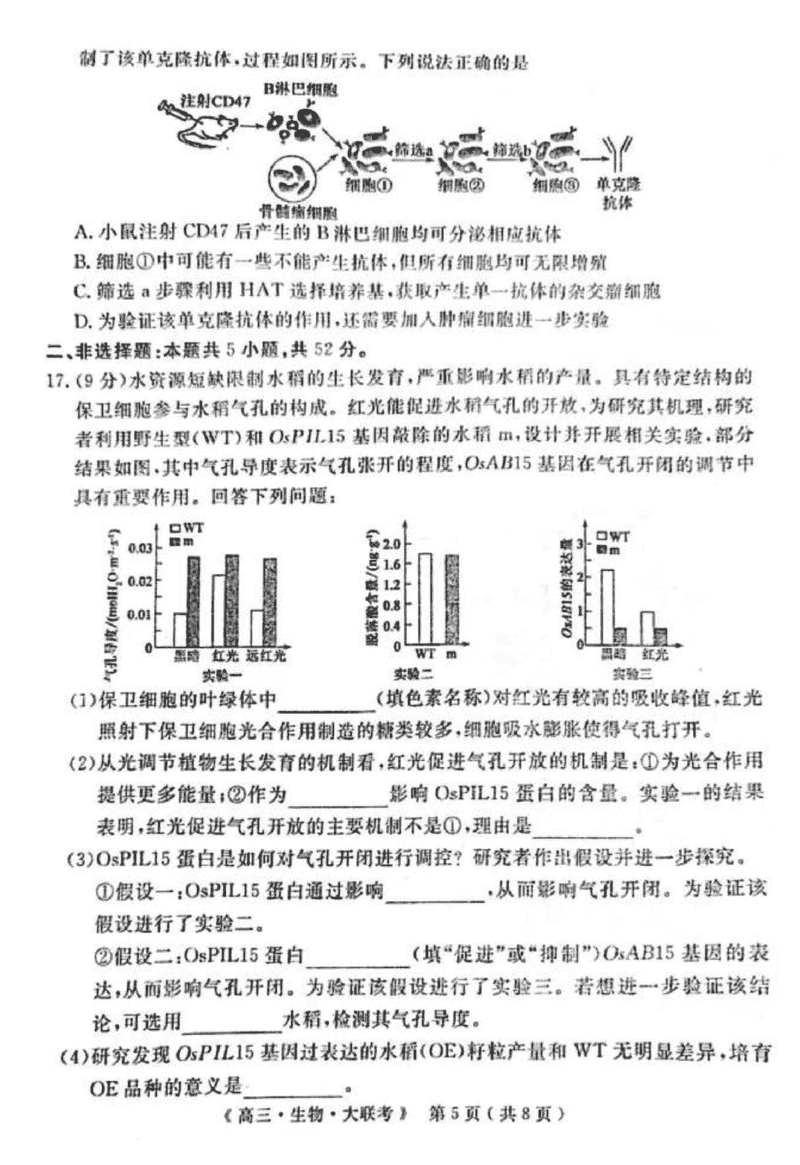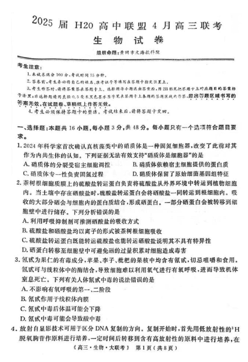河南省H20高中联盟2025届高三下学期4月联考生物考试已于近日开考,为方便考生考后及时查看考试情况,查漏补缺、弥补不足,本文整理了试题答案解析相关信息!