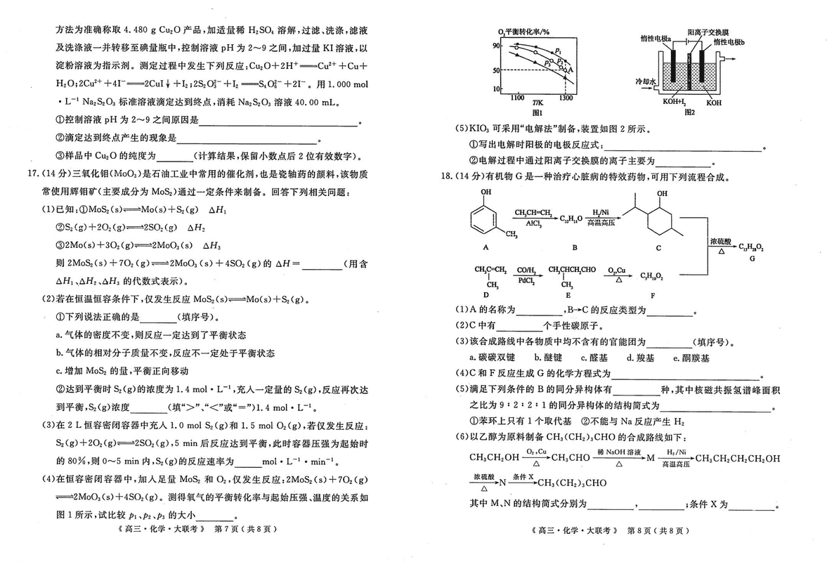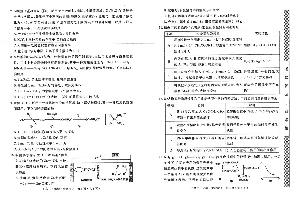 河南H20高中联盟2025届高三下学期4月联考化学试题及答案