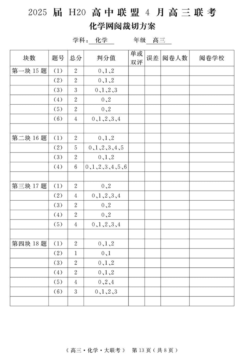 河南省H20高中联盟2025届高三下学期4月联考化学考试已于近日开考,为方便考生考后及时查看考试情况,查漏补缺、弥补不足,本文整理了试题答案解析相关信息!