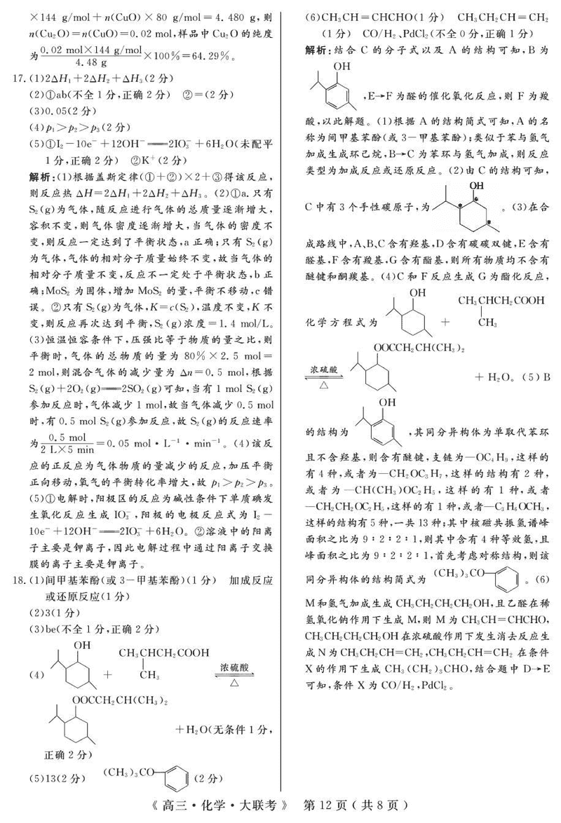 化学试题及答案解析