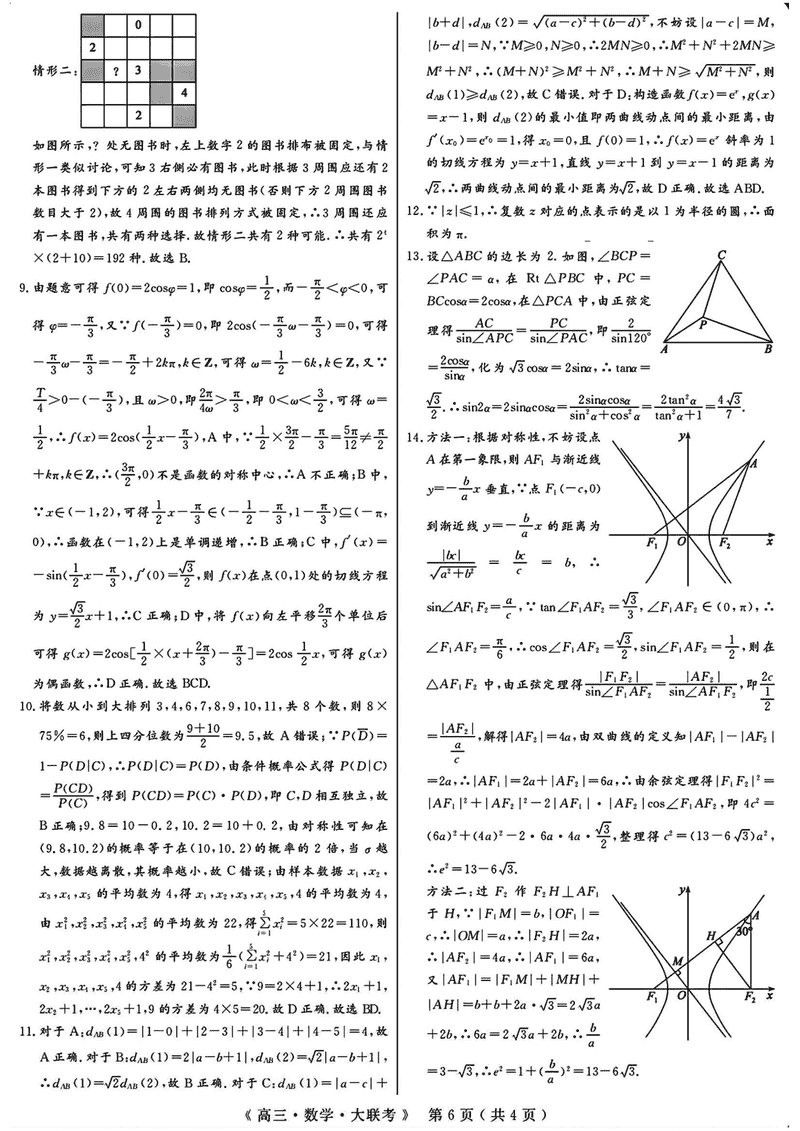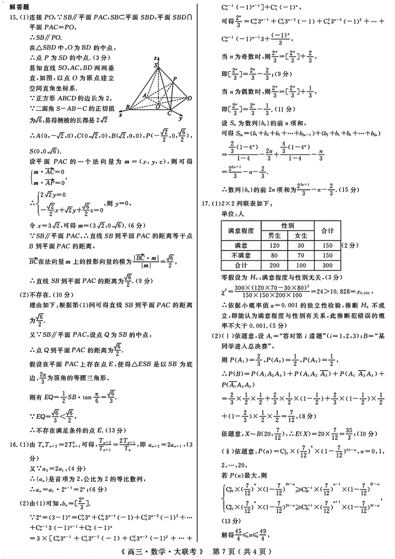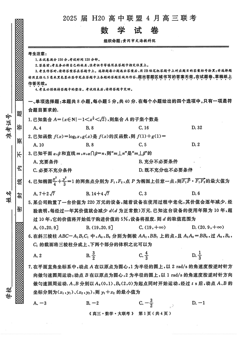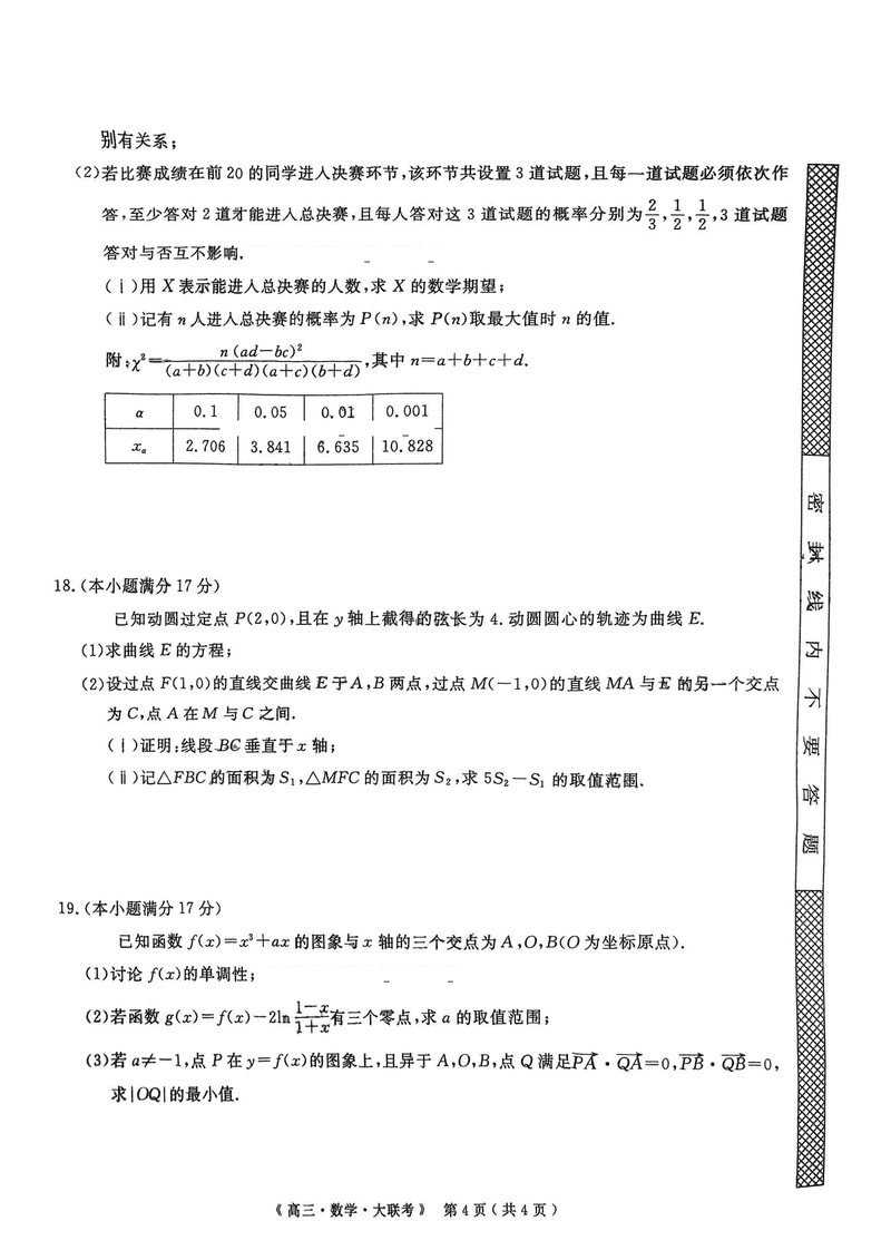 河南H20高中联盟2025届高三下学期4月联考数学试题及答案