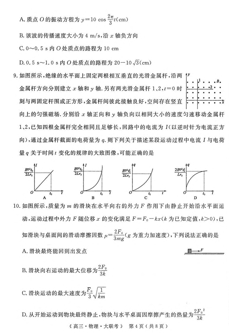 河南H20高中联盟2025届高三下学期4月联考物理试题及答案
