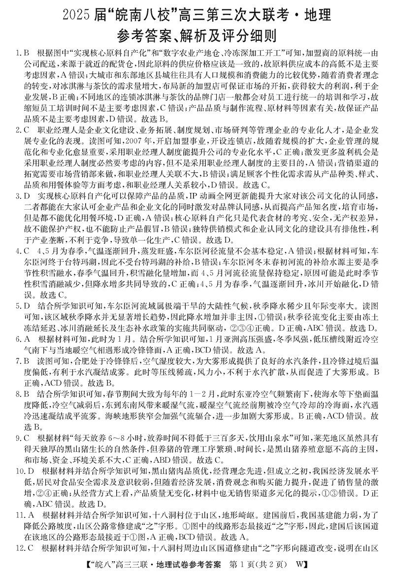 安徽皖南八校2025届高三第三次大联考地理考试已于近日开考,为方便考生考后及时查看考试情况,查漏补缺、弥补不足,本文整理了试题答案解析相关信息!