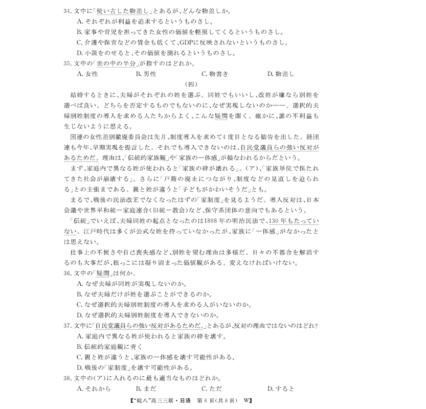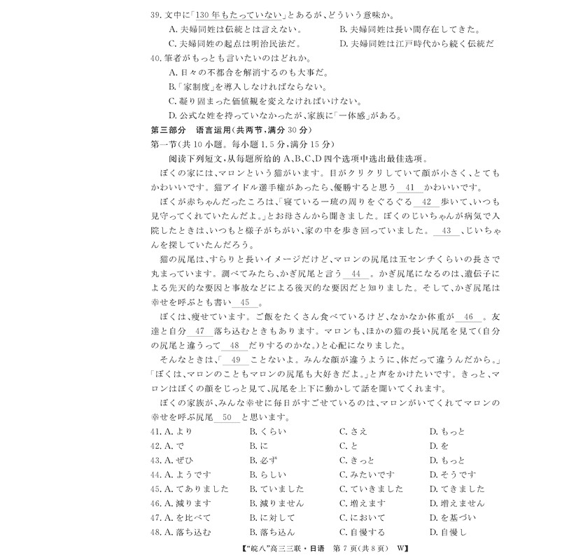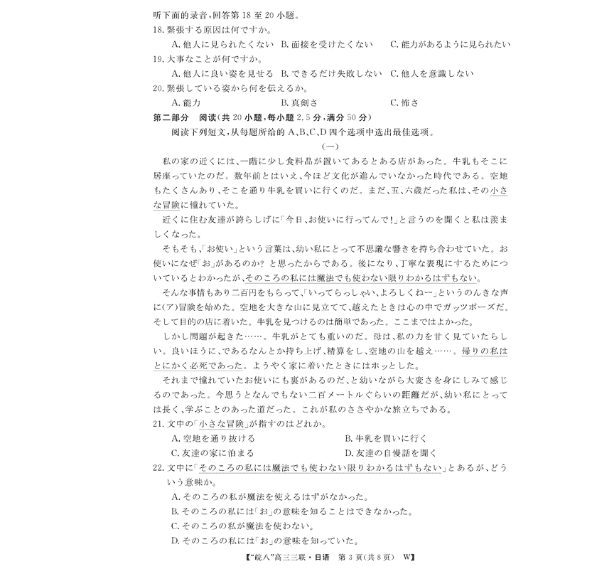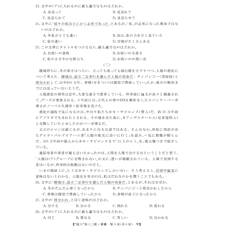 安徽皖南八校2025届高三第三次大联考日语试题及答案