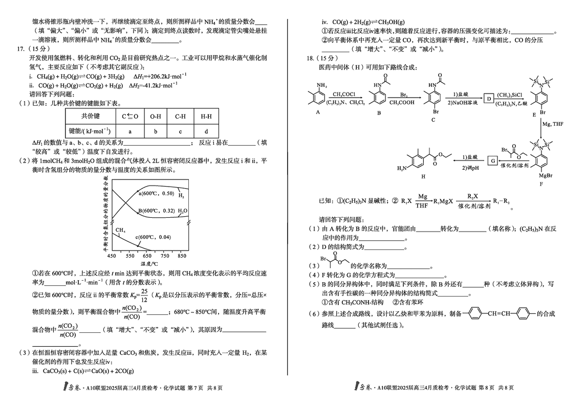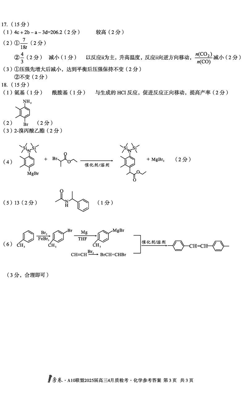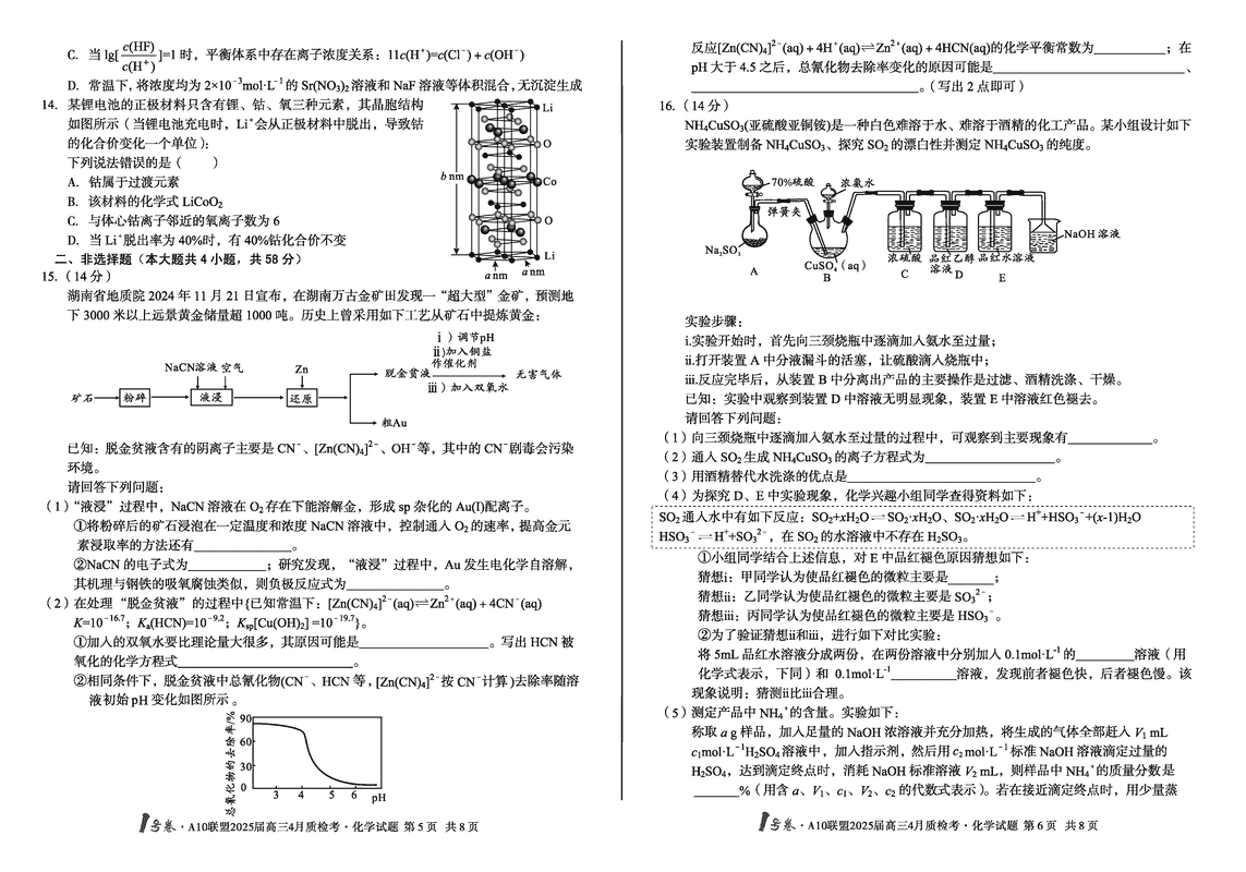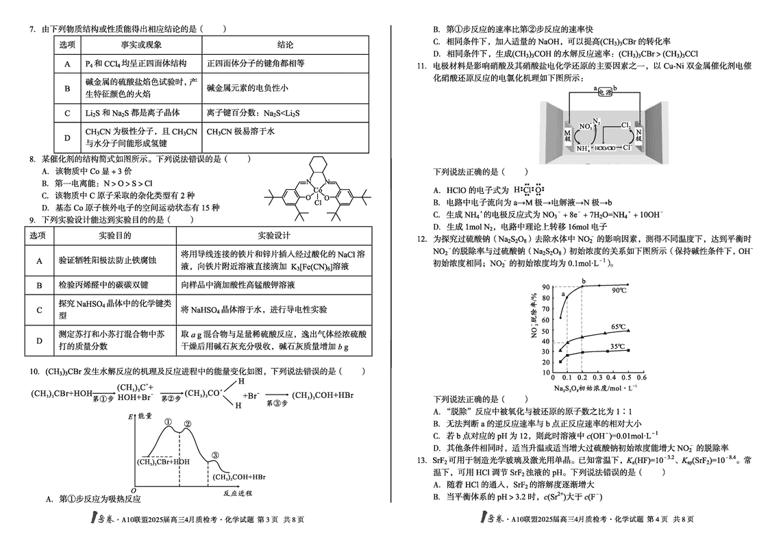 安徽省1号卷·A10联盟2025届高三4月质检化学试题及答案