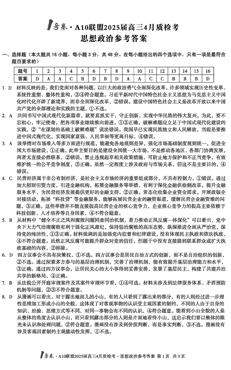 安徽省1号卷·A10联盟2025届高三4月质检政治考试已于近日开考,为方便考生考后及时查看考试情况,查漏补缺、弥补不足,本文整理了试题答案解析相关信息!