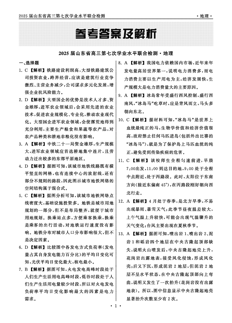 山东省齐鲁名校大联考2025届高三第七次学业水平联合检测地理试题及答案