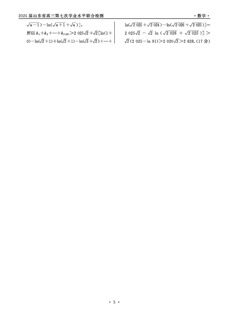 山东省齐鲁名校大联考2025届高三第七次学业水平联合检测数学试题及答案