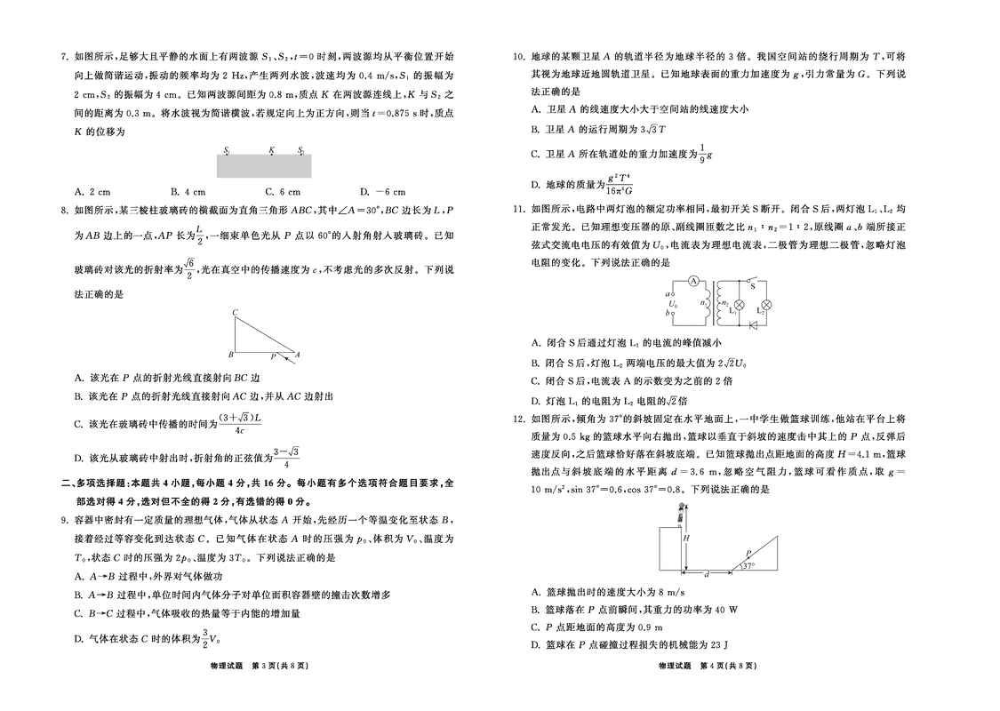 山东省齐鲁名校大联考2025届高三第七次学业水平联合检测物理试题及答案
