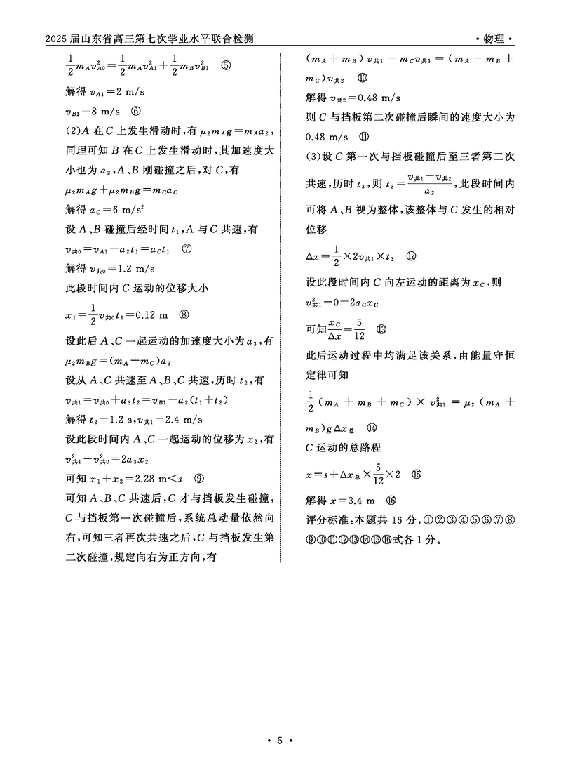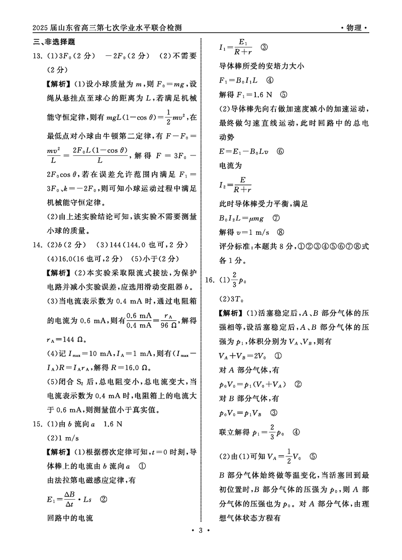 山东省齐鲁名校大联考2025届高三第七次学业水平联合检测物理考试已于近日开考,为方便考生考后及时查看考试情况,查漏补缺、弥补不足,本文整理了试题答案解析相关信息!