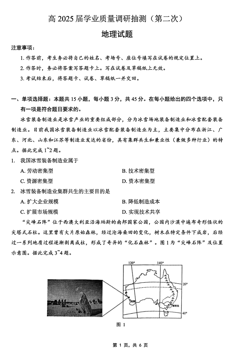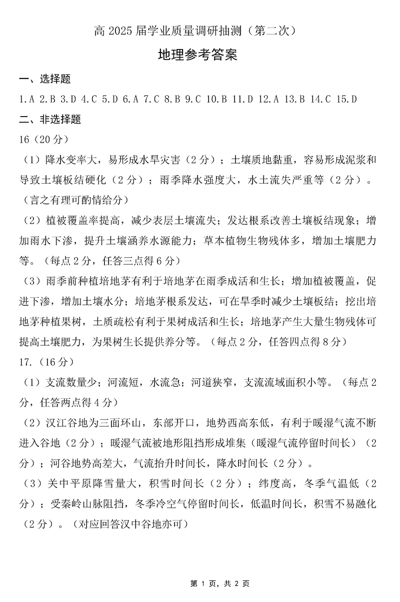 重庆主城五区二诊2025届学业质量调研抽测(第二次)地理考试已于近日开考,为方便考生考后及时查看考试情况,查漏补缺、弥补不足,本文整理了试题答案解析相关信息!