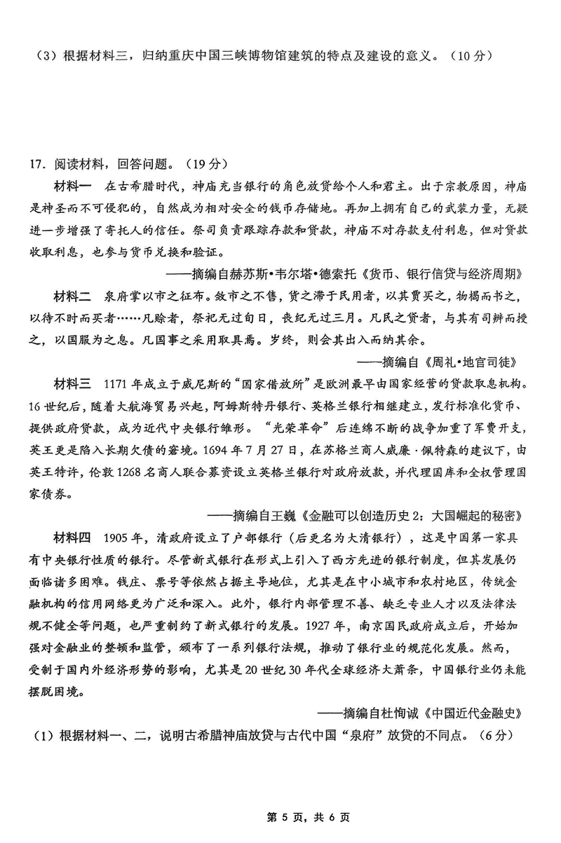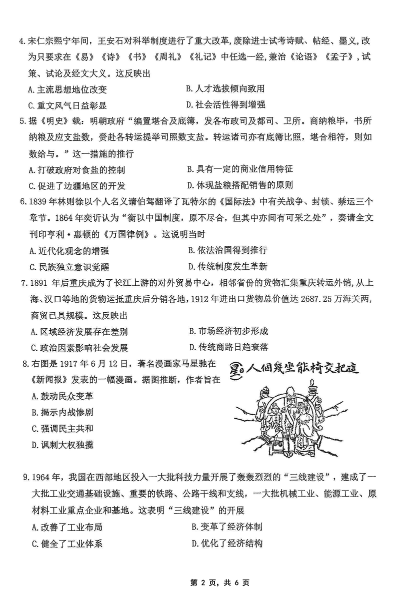 2025届重庆主城五区二诊历史试题及答案