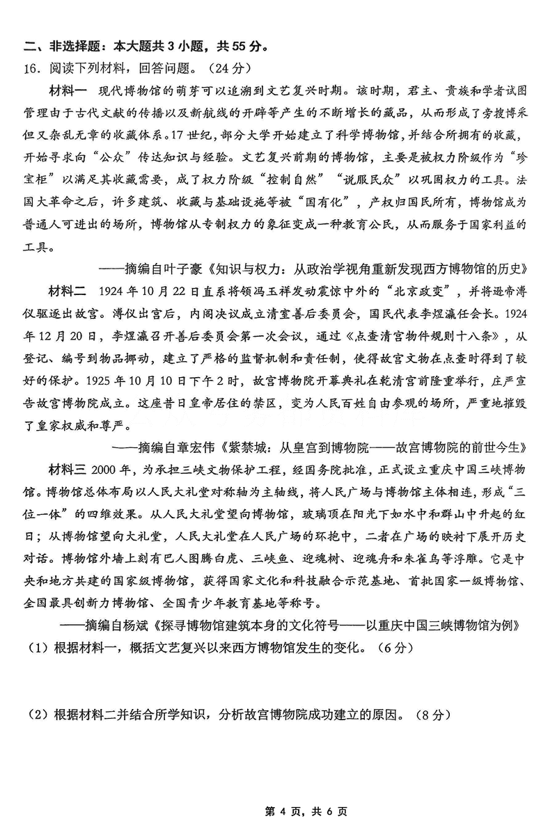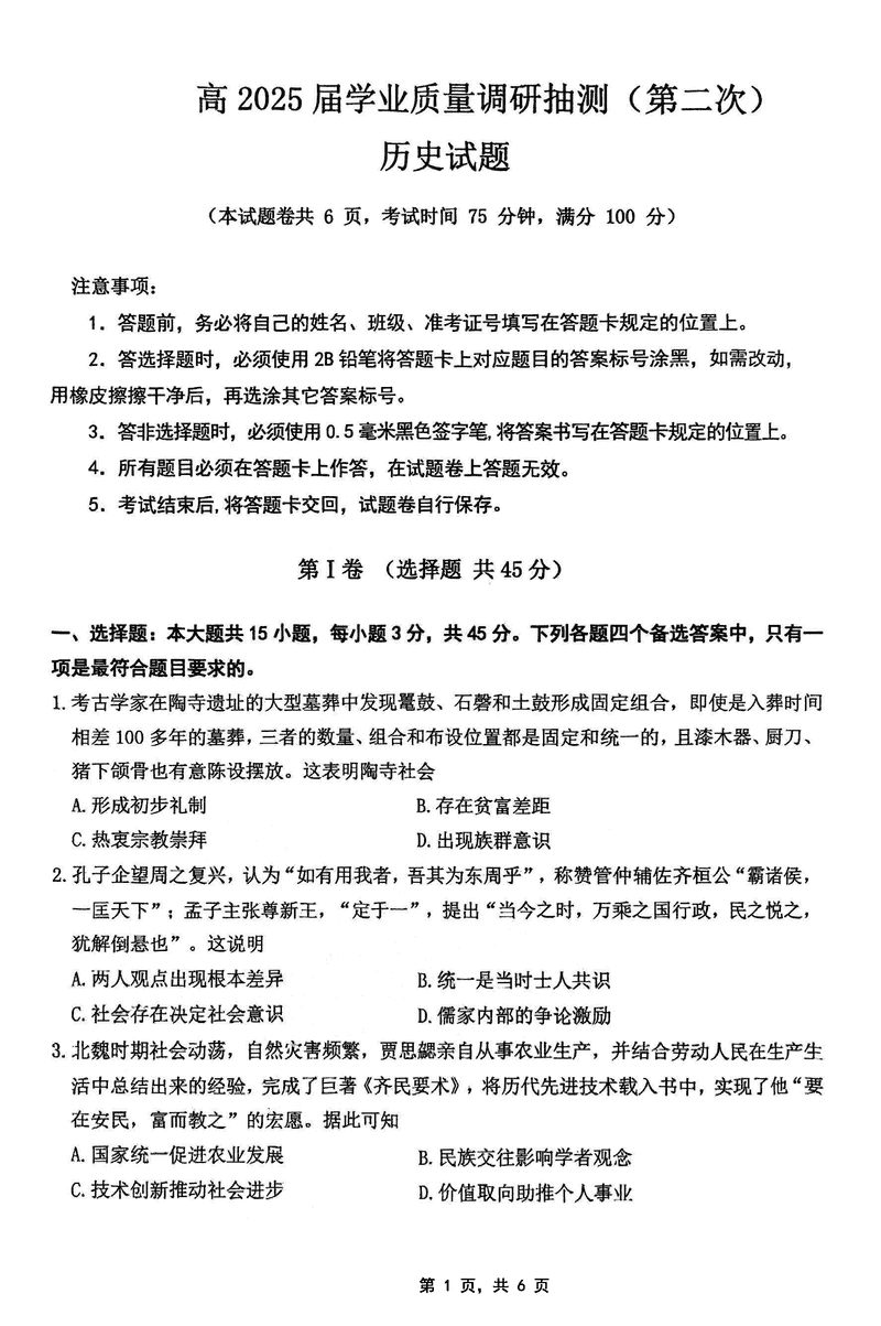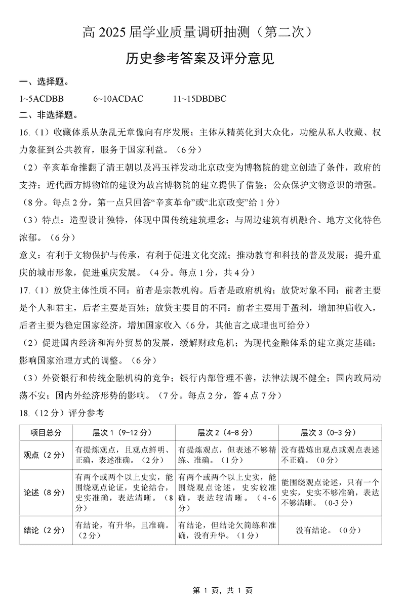 重庆主城五区二诊2025届学业质量调研抽测(第二次)历史考试已于近日开考,为方便考生考后及时查看考试情况,查漏补缺、弥补不足,本文整理了试题答案解析相关信息!