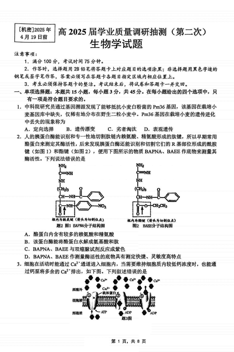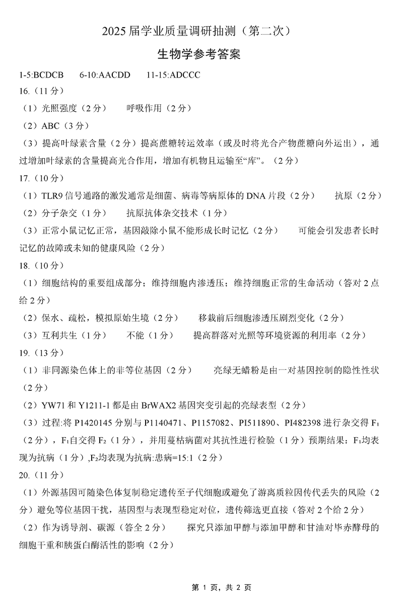 重庆主城五区二诊2025届学业质量调研抽测(第二次)生物考试已于近日开考,为方便考生考后及时查看考试情况,查漏补缺、弥补不足,本文整理了试题答案解析相关信息!