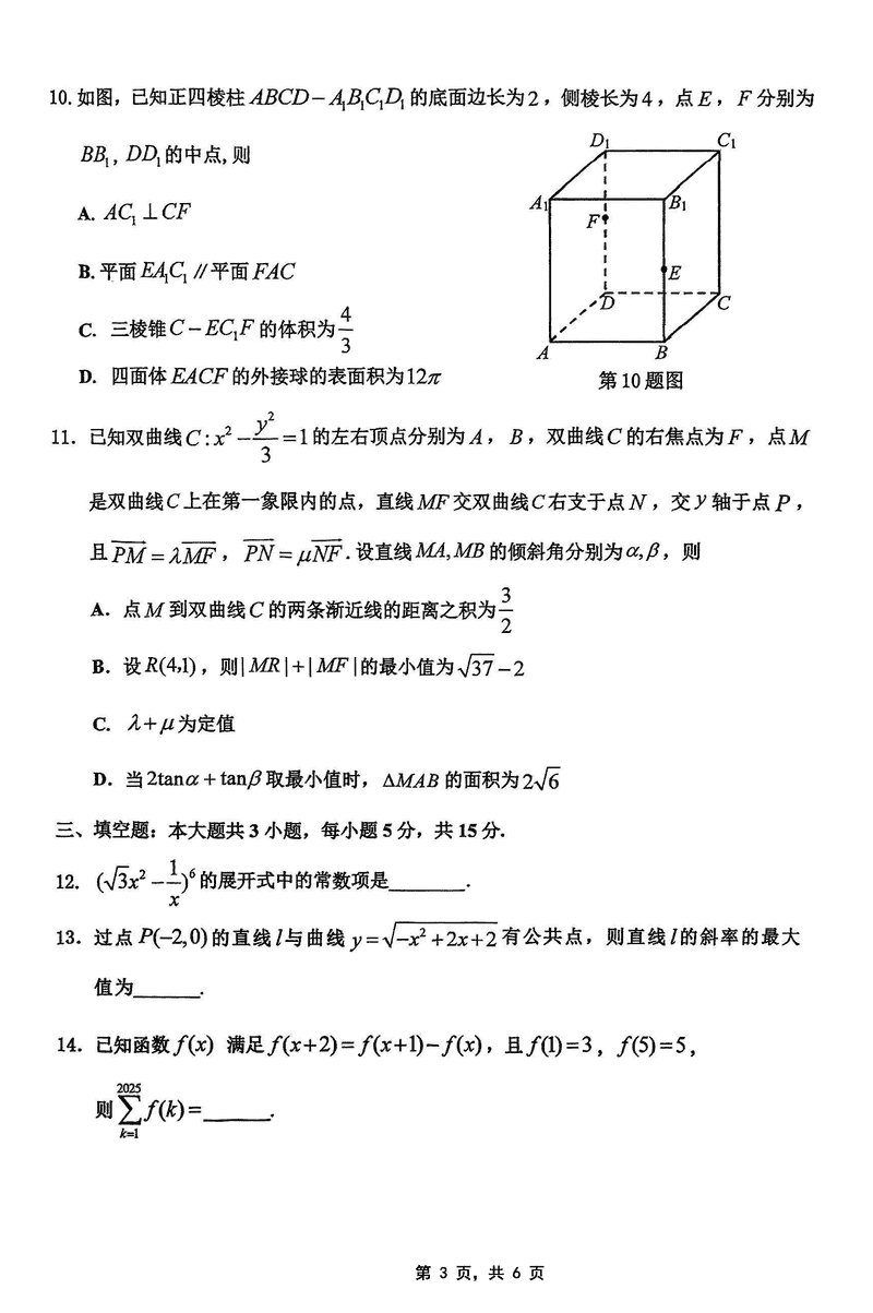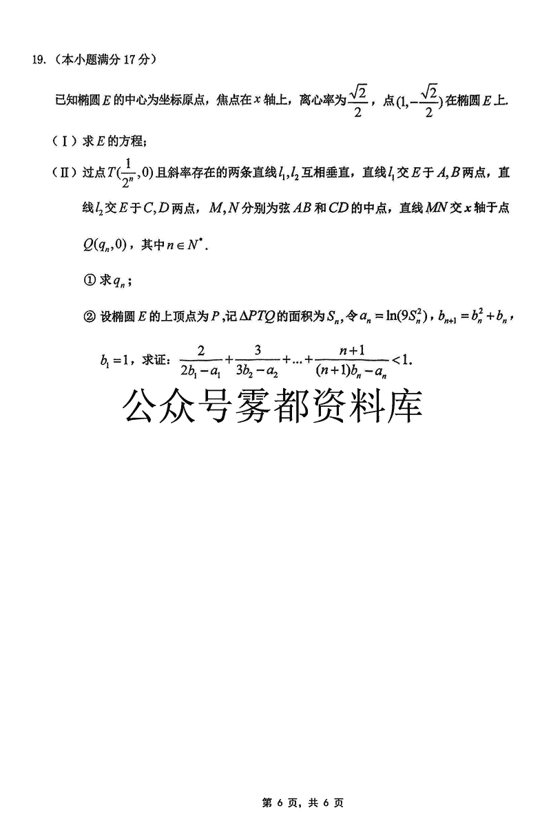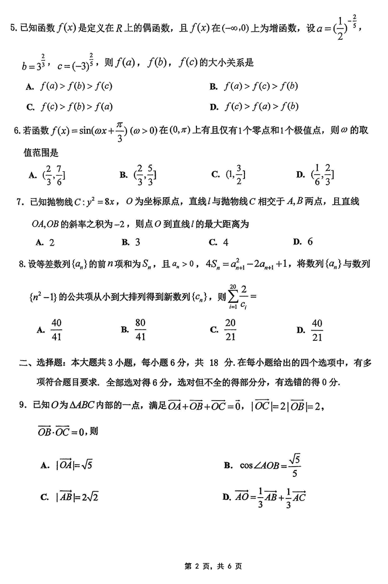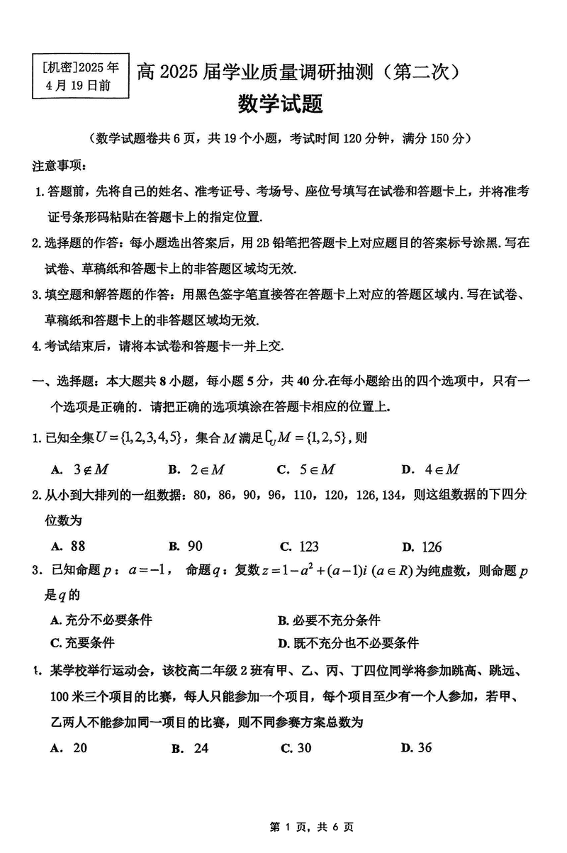 2025届重庆主城五区二诊数学试题及答案