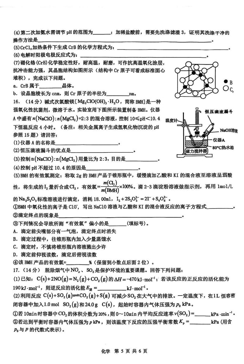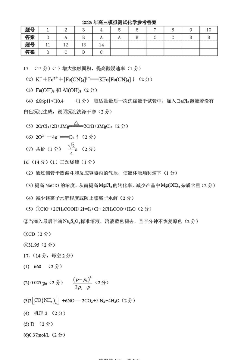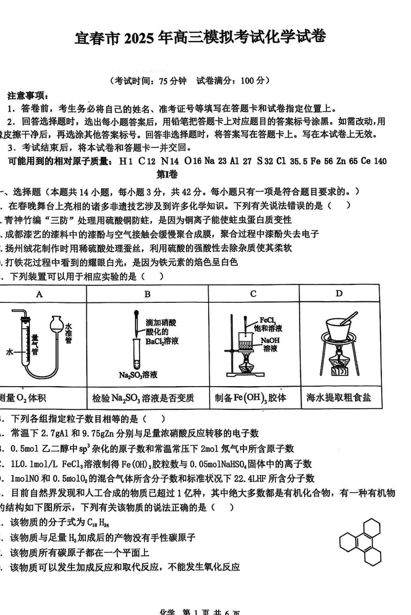 宜春二模2025届高三下学期4月模考化学试题及答案 时间:2025-04-21 江西 理综试题 宜春二模2025届高三下学期4月模考化学考试已于近日开考,为方便考生考后及时查看考试情况,查漏补缺、弥补不足,本文整理了试题答案解析相关信息! 汇总:宜春二模2025届高三下学期4月模考试题及答案汇总 化学试题及答案解析