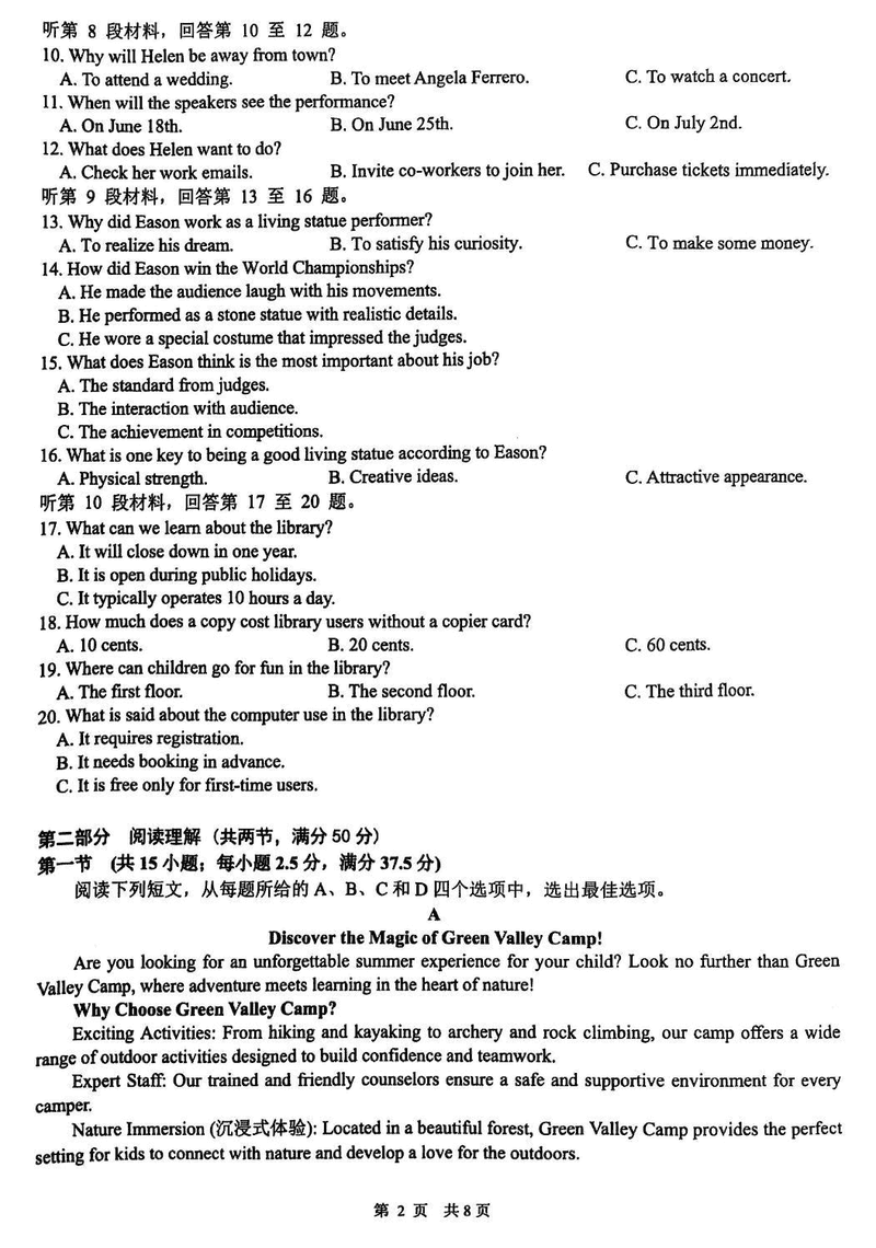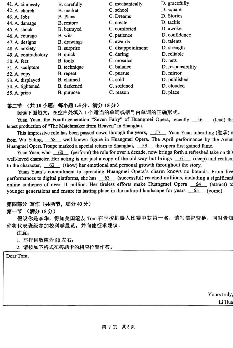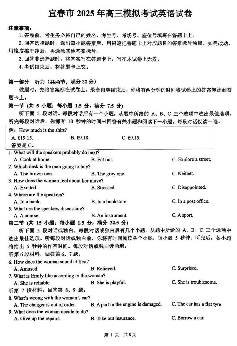宜春二模2025届高三下学期4月模考英语试题及答案 时间:2025-04-21 江西 英语试题 宜春二模2025届高三下学期4月模考英语考试已于近日开考,为方便考生考后及时查看考试情况,查漏补缺、弥补不足,本文整理了试题答案解析相关信息! 汇总:宜春二模2025届高三下学期4月模考试题及答案汇总 英语试题及答案解析