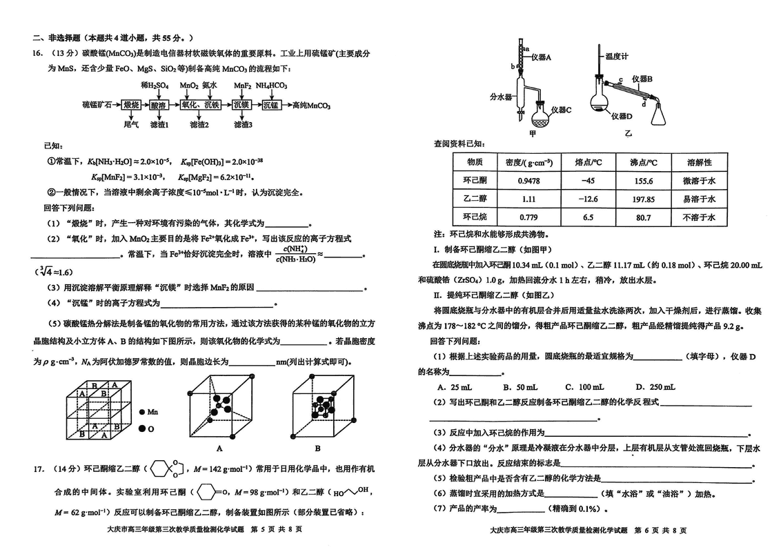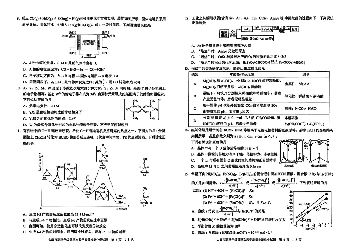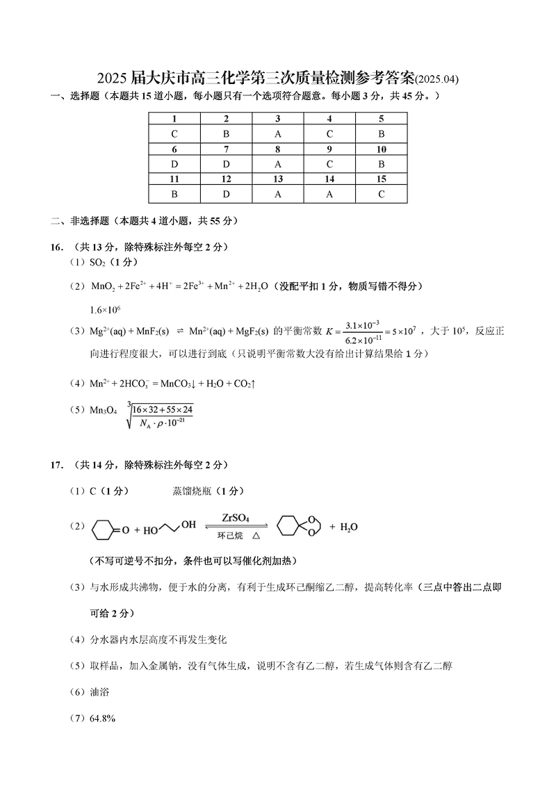 黑龙江大庆2025届高三下学期第三次模考化学考试已于近日开考,为方便考生考后及时查看考试情况,查漏补缺、弥补不足,本文整理了试题答案解析相关信息!