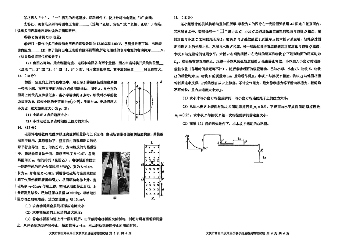 黑龙江大庆2025届高三下学期第三次模考物理考试已于近日开考,为方便考生考后及时查看考试情况,查漏补缺、弥补不足,本文整理了试题答案解析相关信息!