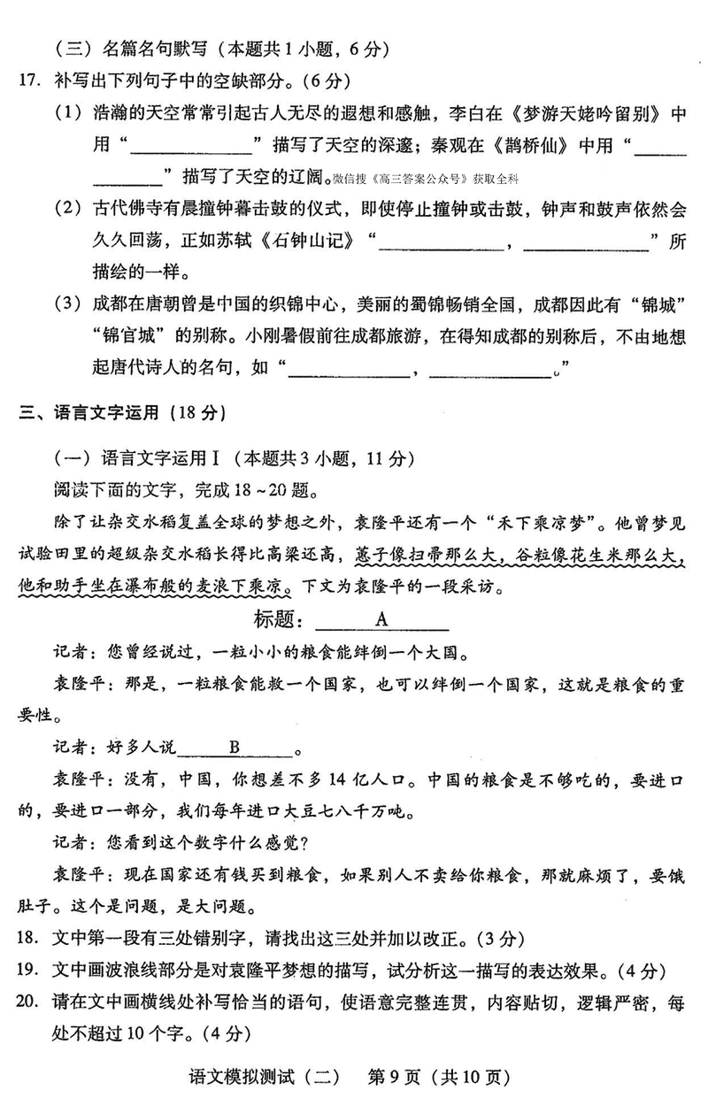 语文试题及答案解析