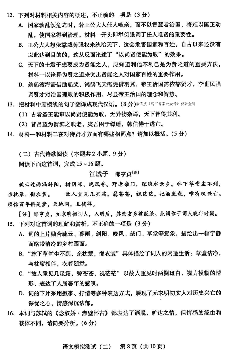 广东二模2025年高考统一考试模拟测试(二)语文考试已于近日开考,为方便考生考后及时查看考试情况,查漏补缺、弥补不足,本文整理了试题答案解析相关信息!