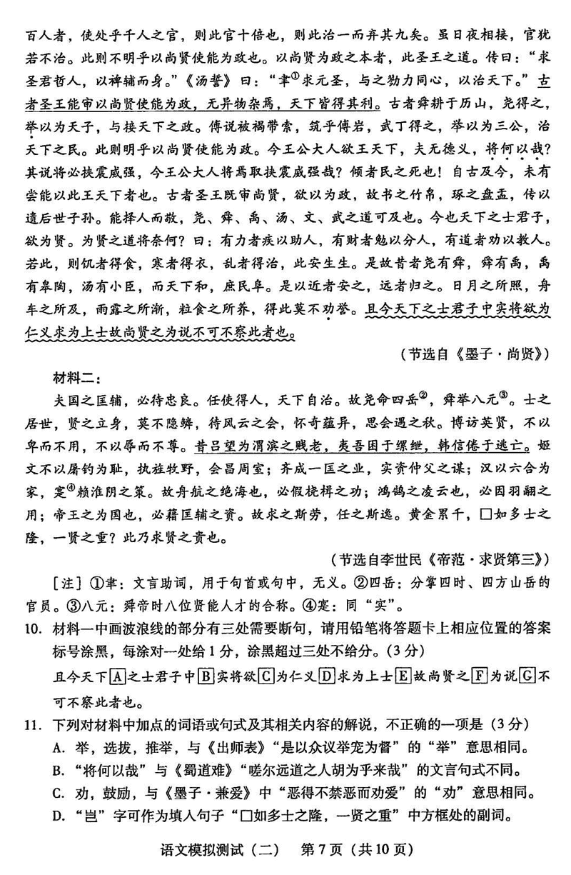 广东二模2025年高考统一考试模拟测试(二)语文试题及答案