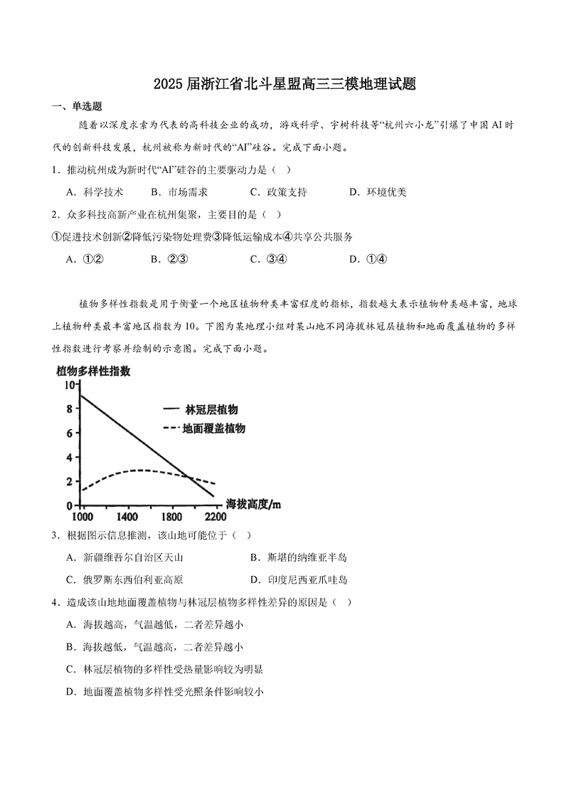 浙江北斗星盟2025届高三下学期三模地理试题及答案 时间:2025-04-23 浙江 文综试题 浙江北斗星盟2025届高三下学期三模地理考试已于近日开考,为方便考生考后及时查看考试情况,查漏补缺、弥补不足,本文整理了试题答案解析相关信息! 汇总:浙江北斗星盟2025届高三下学期三模试题及答案汇总 地理试题及答案解析