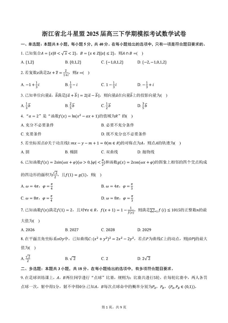 浙江北斗星盟2025届高三下学期三模数学试题及答案 时间:2025-04-23 浙江 数学试题 浙江北斗星盟2025届高三下学期三模数学考试已于近日开考,为方便考生考后及时查看考试情况,查漏补缺、弥补不足,本文整理了试题答案解析相关信息! 汇总:浙江北斗星盟2025届高三下学期三模试题及答案汇总 数学试题及答案解析