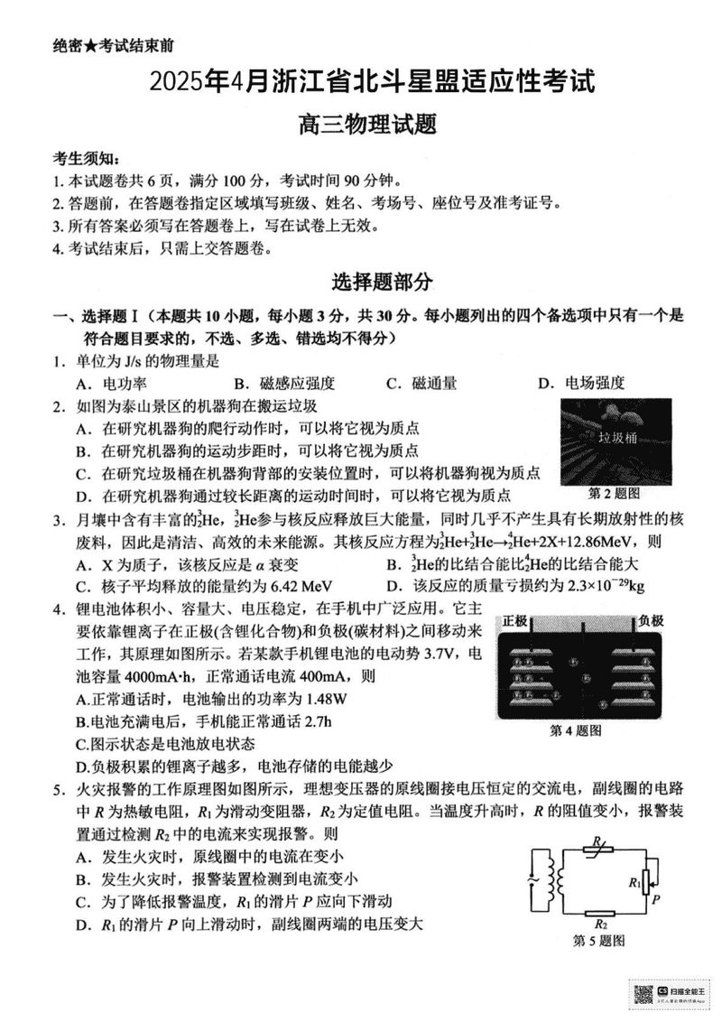 浙江北斗星盟2025届高三下学期三模物理试题及答案 时间:2025-04-23 浙江 理综试题 浙江北斗星盟2025届高三下学期三模物理考试已于近日开考,为方便考生考后及时查看考试情况,查漏补缺、弥补不足,本文整理了试题答案解析相关信息! 汇总:浙江北斗星盟2025届高三下学期三模试题及答案汇总 物理试题及答案解析