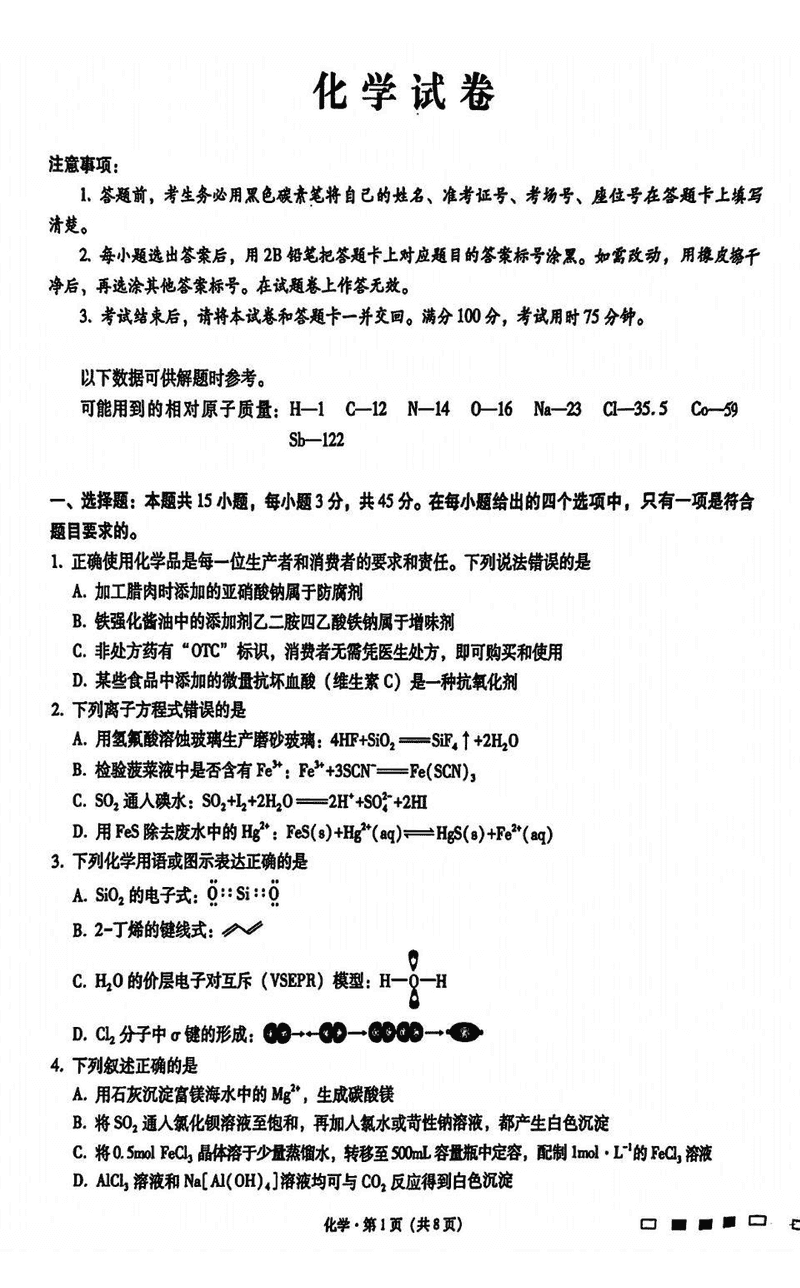 包头市2025届高三下学期4月二模化学试题及答案 时间:2025-04-23 内蒙 理综试题 包头市2025届高三下学期4月二模化学考试已于近日开考,为方便考生考后及时查看考试情况,查漏补缺、弥补不足,本文整理了试题答案解析相关信息! 汇总:包头市2025届高三下学期4月二模试题及答案汇总 化学试题及答案解析