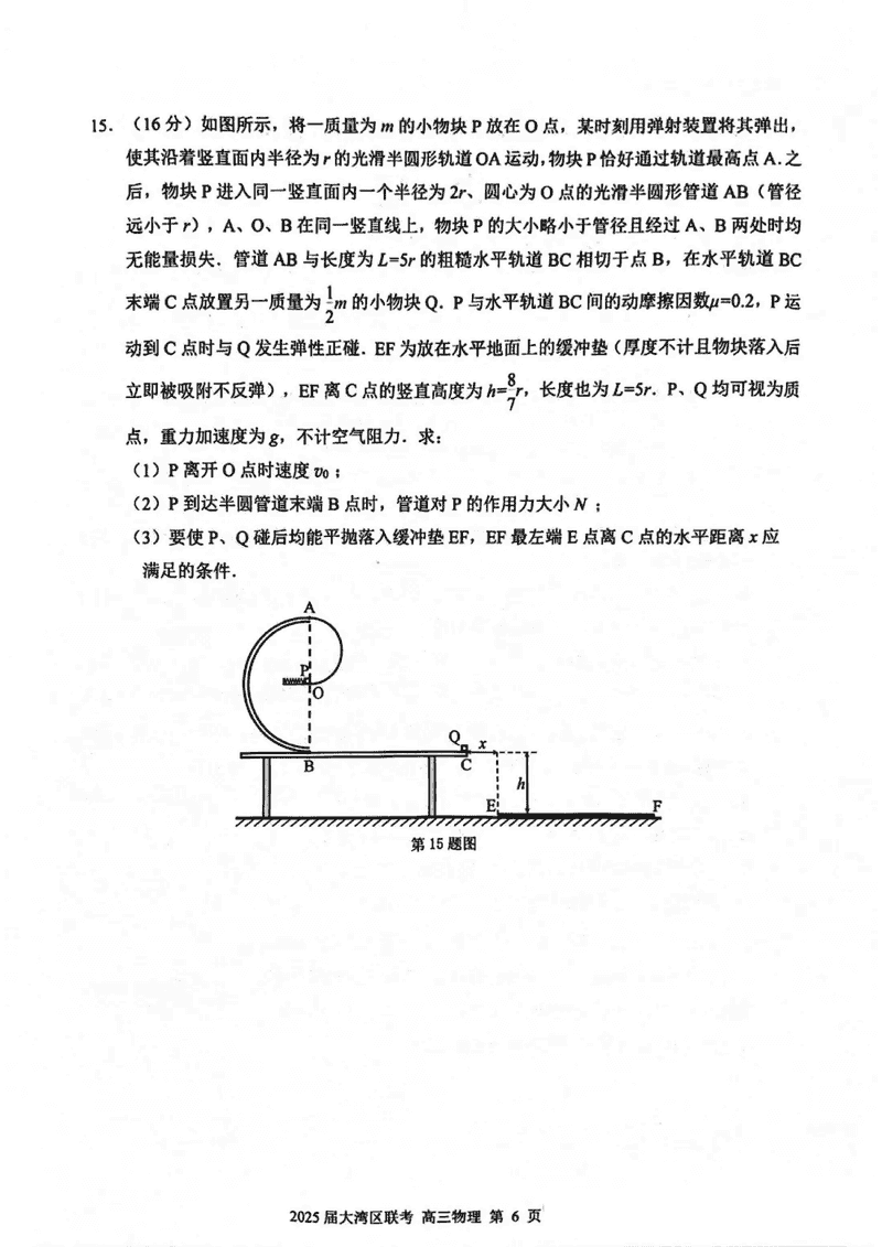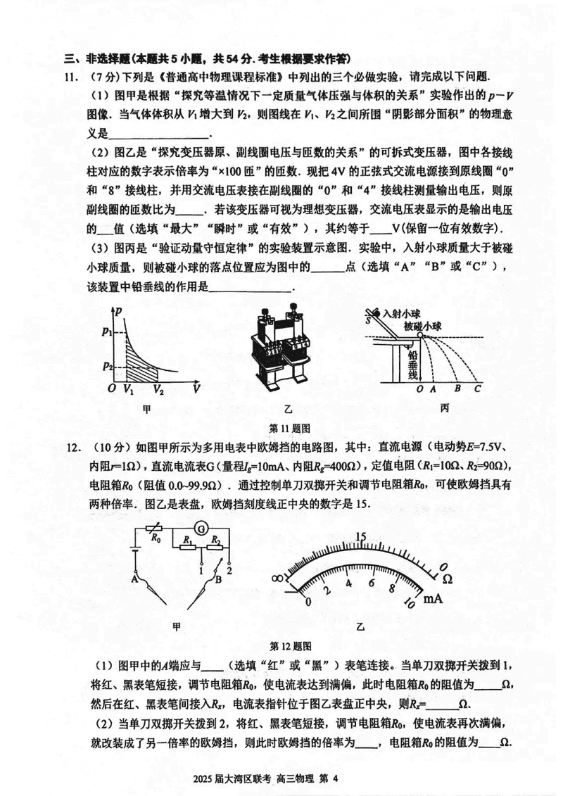 广东大湾区二模2025届高三联合模考(二)物理试题及答案