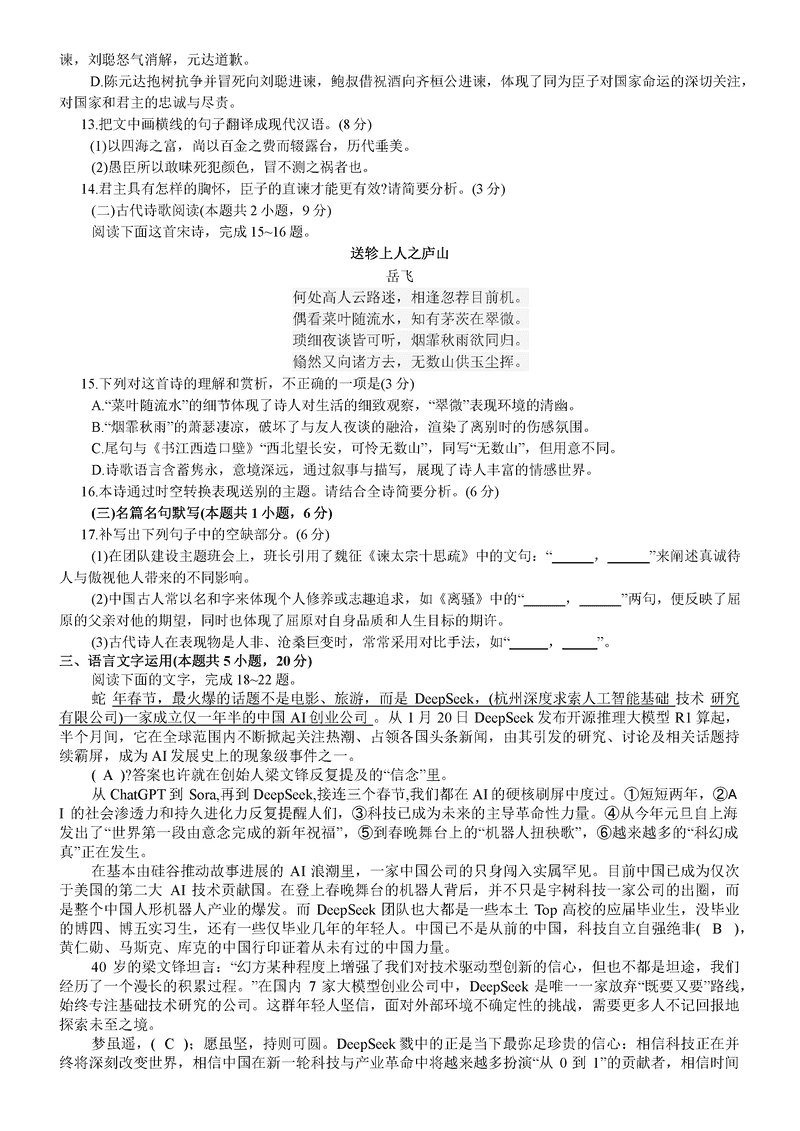 辽宁协作校2025届高三第二次模拟考语文试题及答案 时间:2025-04-24 辽宁 语文试题 辽宁协作校2025届高三第二次模拟考语文考试已于近日开考,为方便考生考后及时查看考试情况,查漏补缺、弥补不足,本文整理了试题答案解析相关信息! 汇总:辽宁协作校2025届高三第二次模拟考试题及答案汇总 语文试题及答案解析