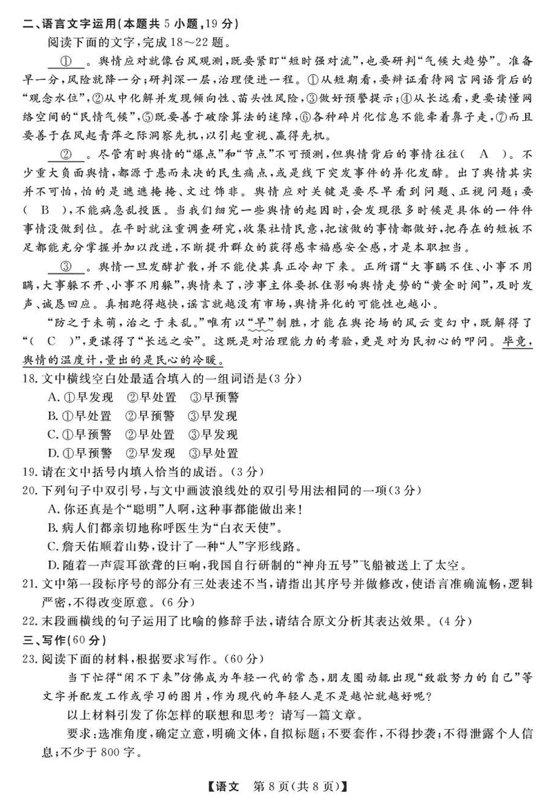 浙江省强基联盟2025届高三下学期5月联考语文考试已于近日开考,为方便考生考后及时查看考试情况,查漏补缺、弥补不足,本文整理了试题答案解析相关信息!