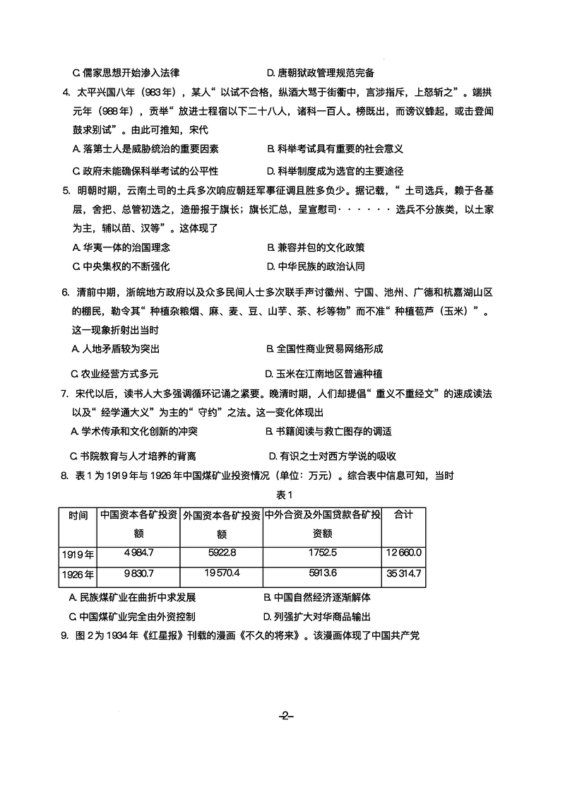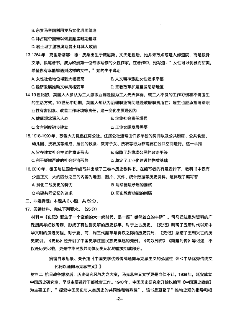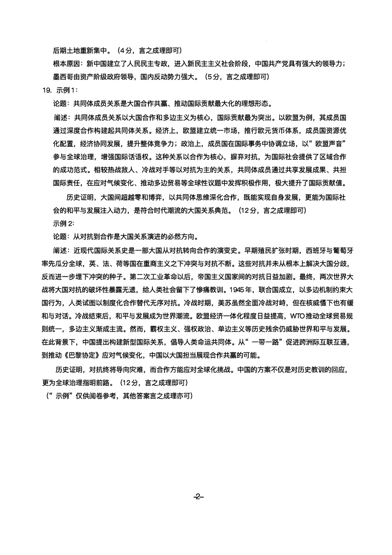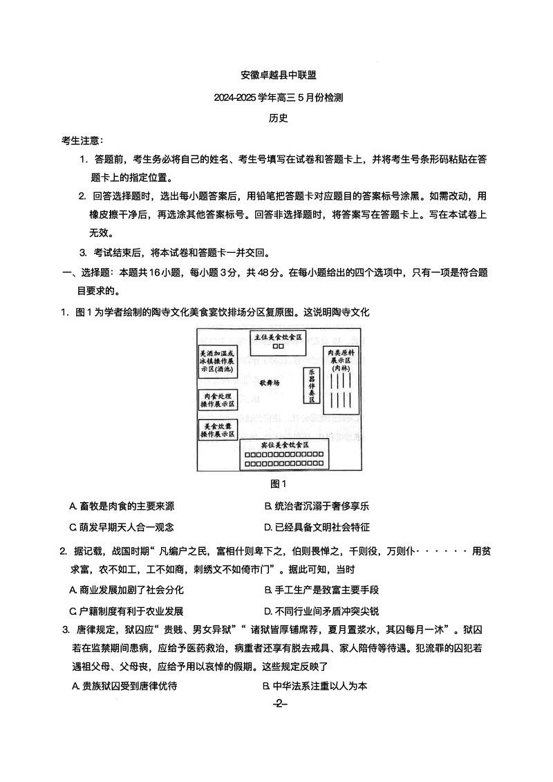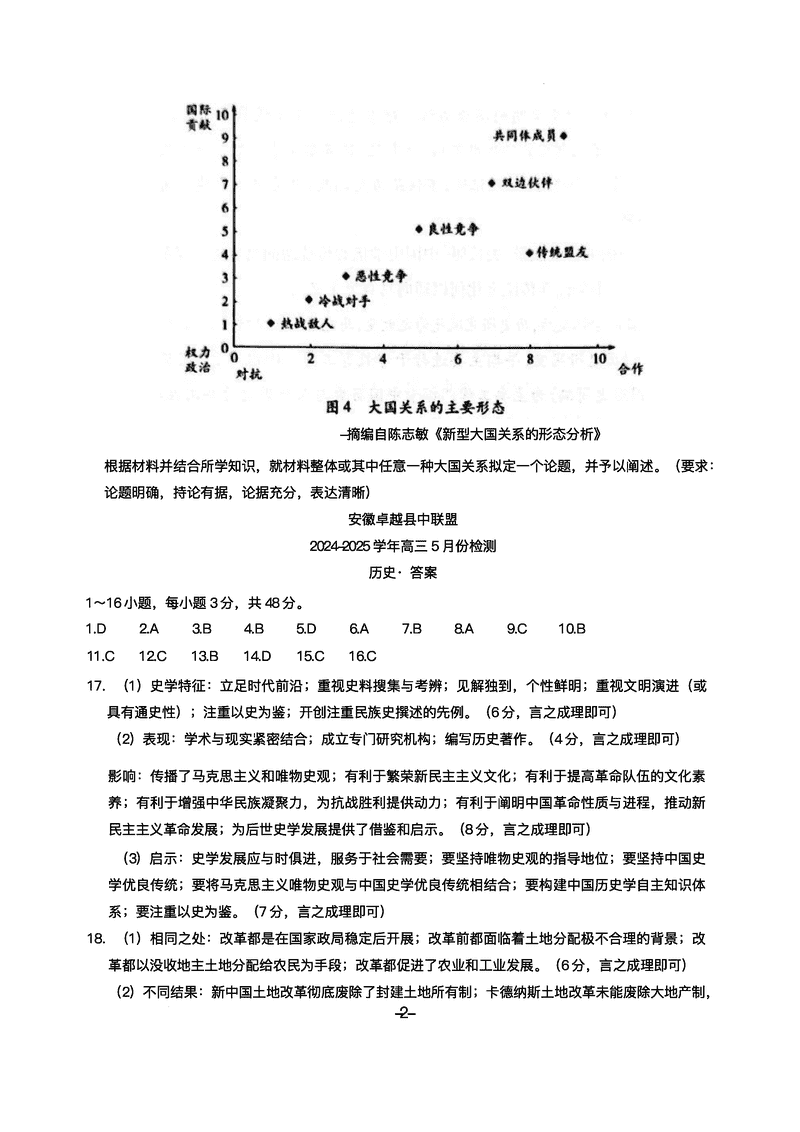 安徽卓越县中联2025年高三下学期5月检测历史试题及答案