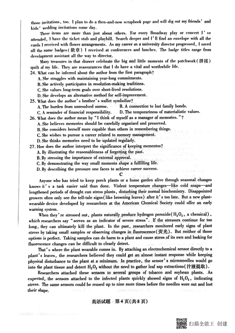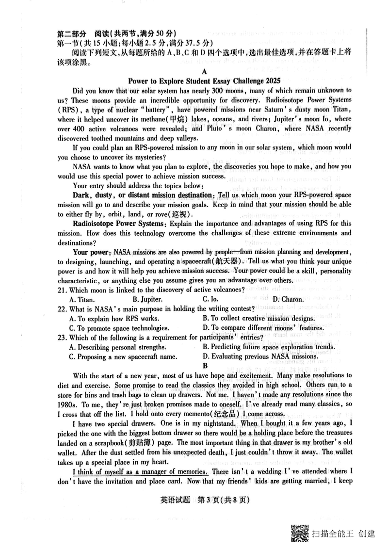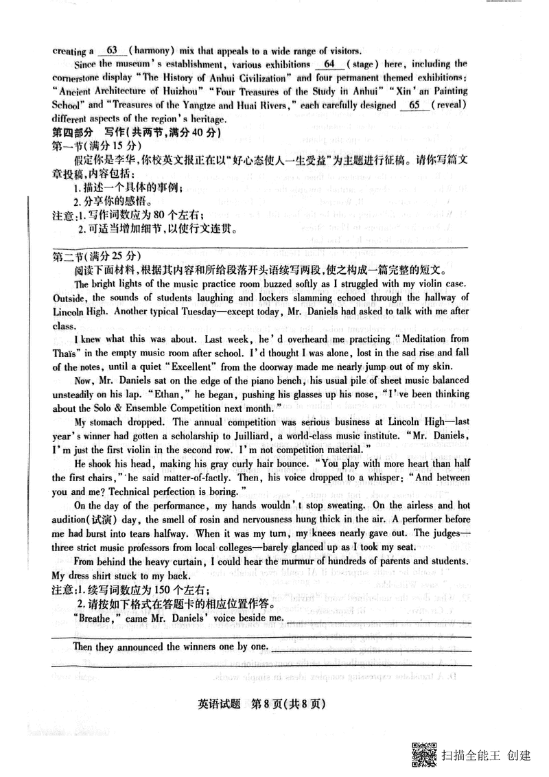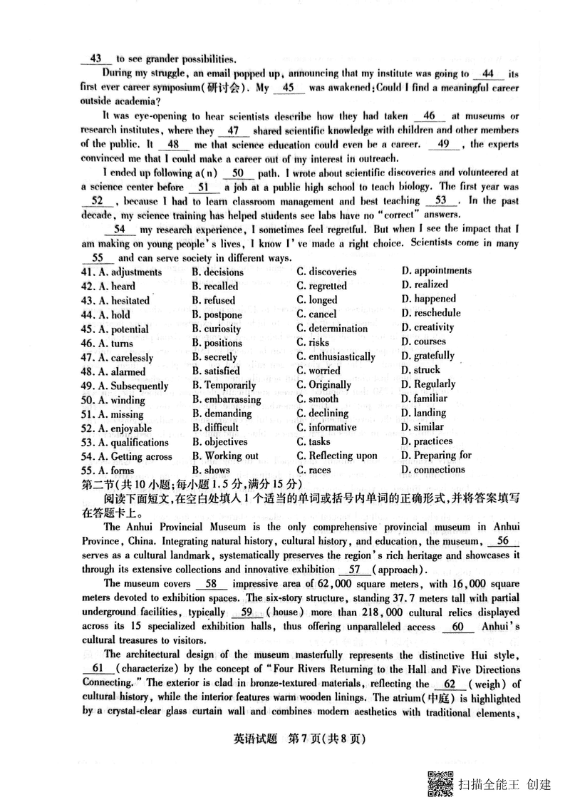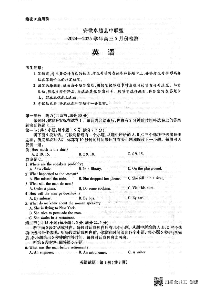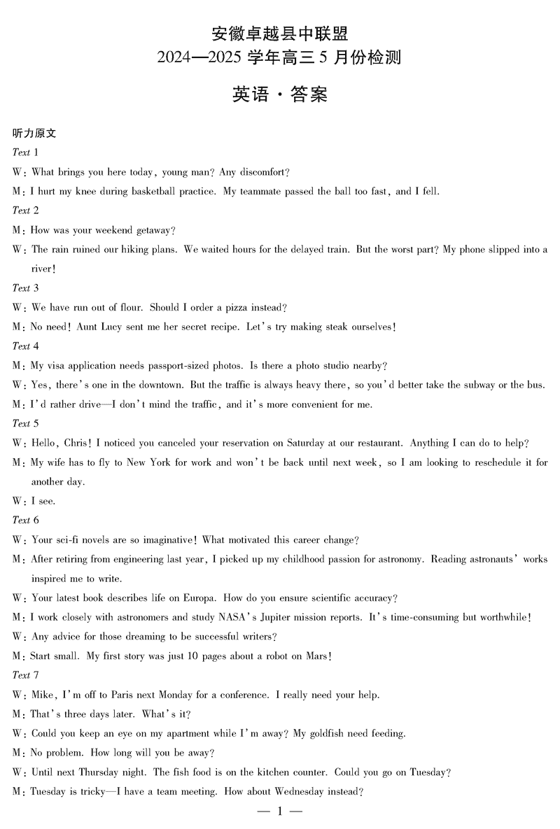 安徽卓越县中联2025年高三下学期5月检测英语试题及答案