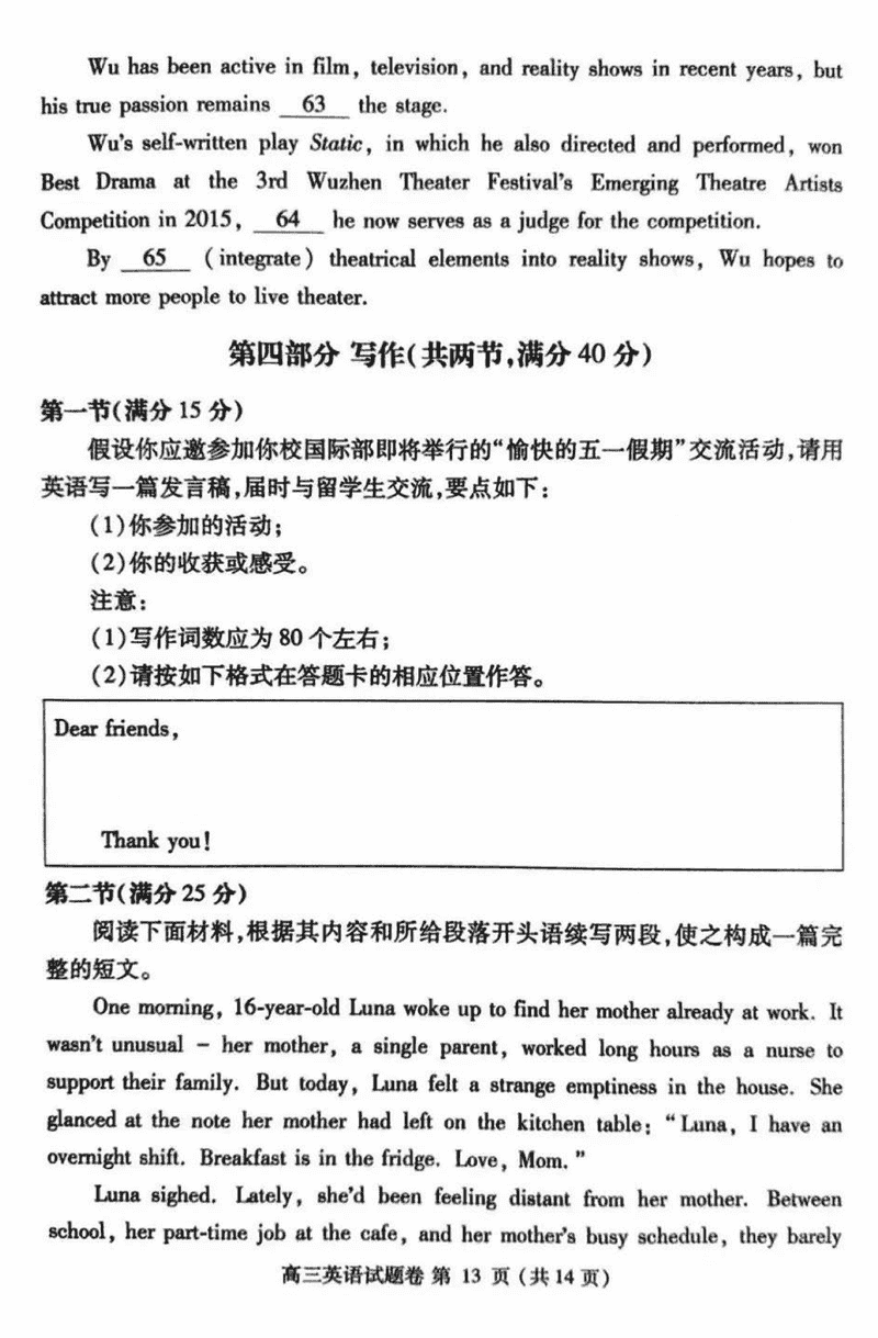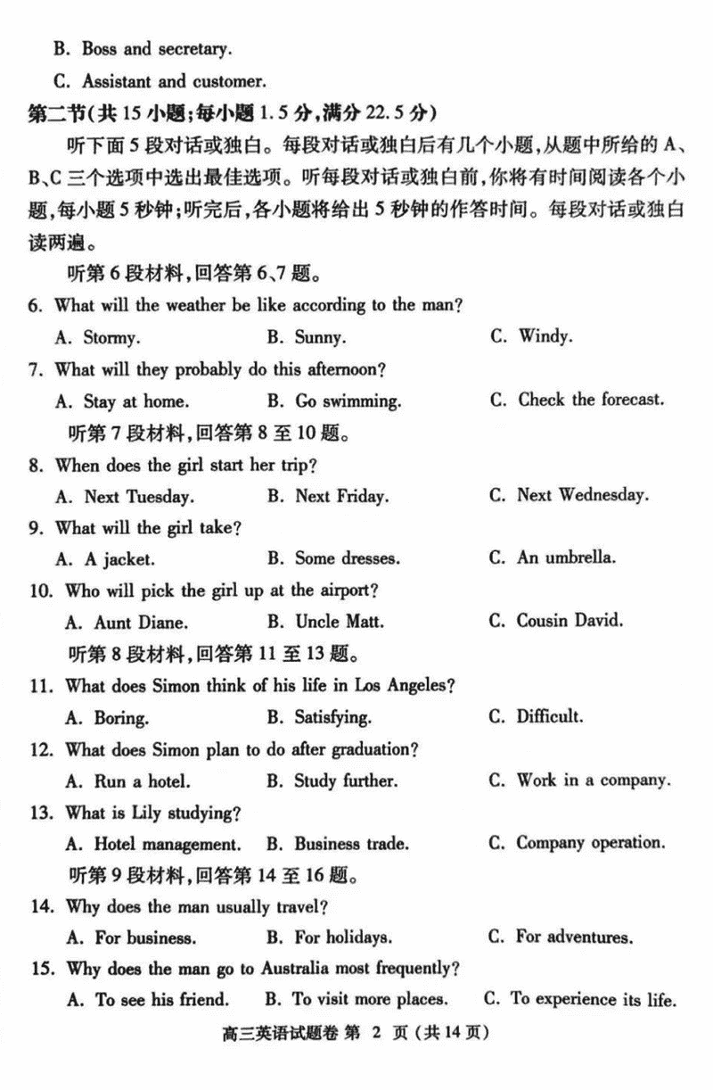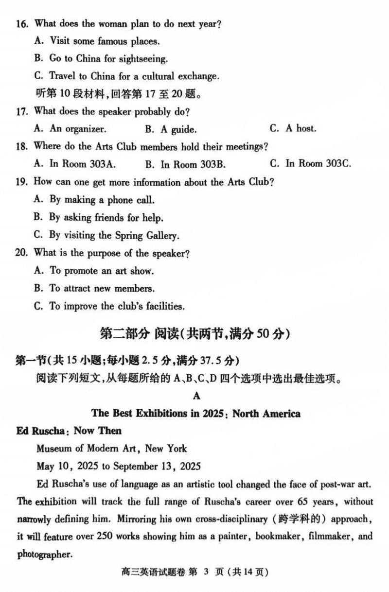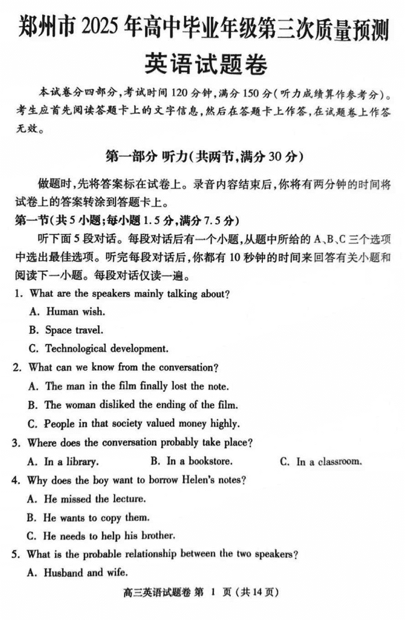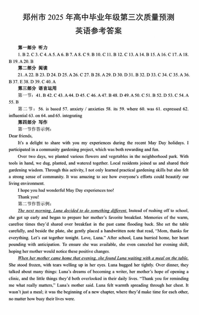 郑州市2025年高三下学期第三次质量预测英语考试已于近日开考,为方便考生考后及时查看考试情况,查漏补缺、弥补不足,本文整理了试题答案解析相关信息!