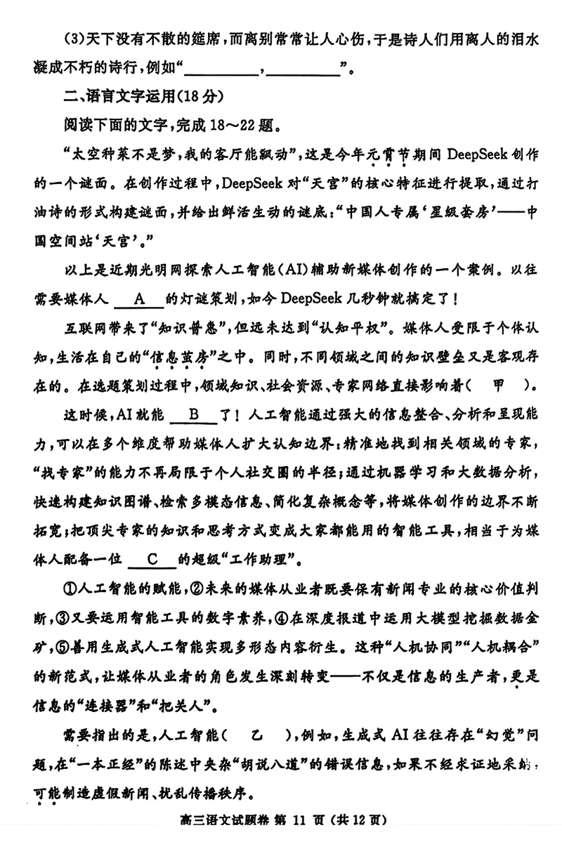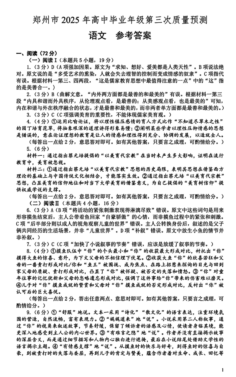 郑州市2025年高三下学期第三次质量预测语文试题及答案