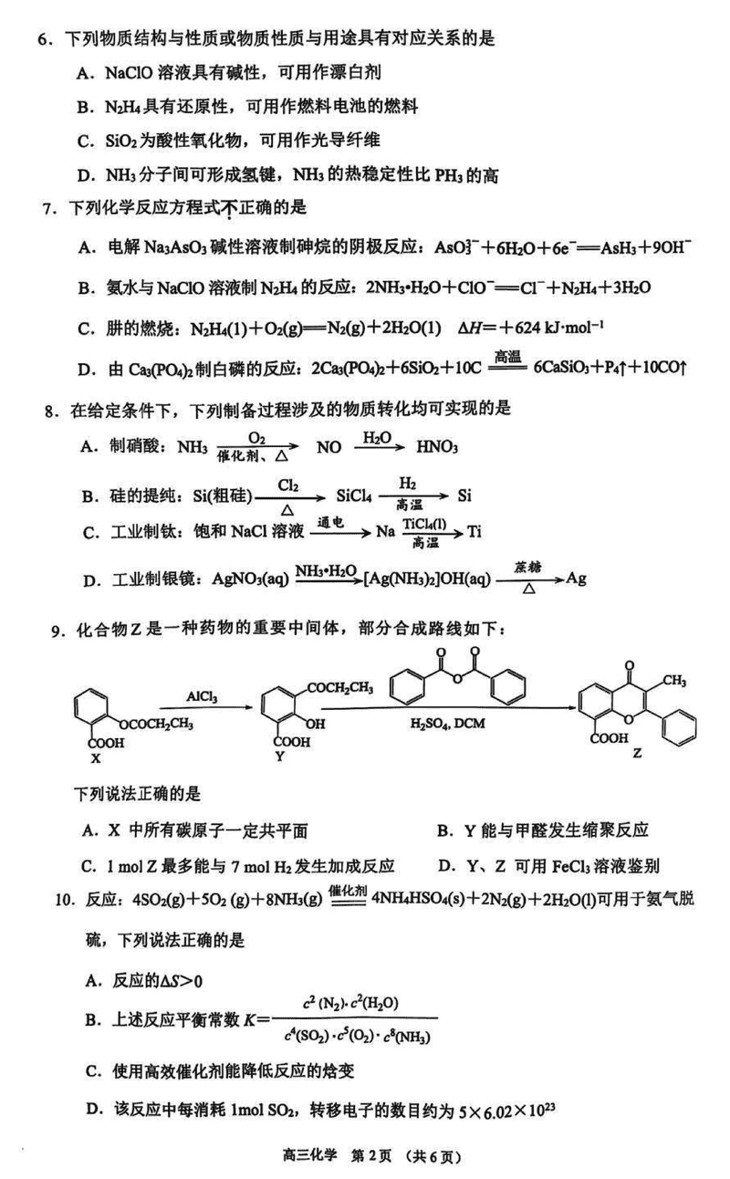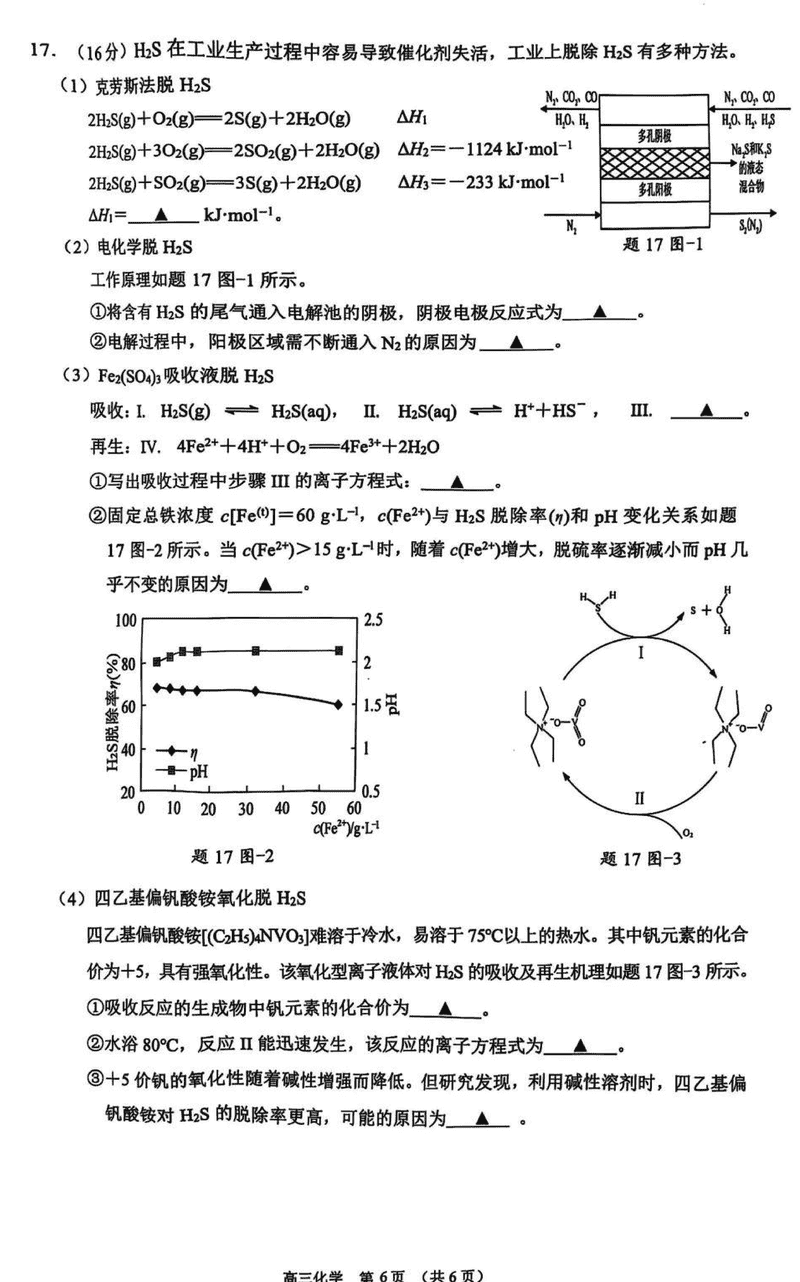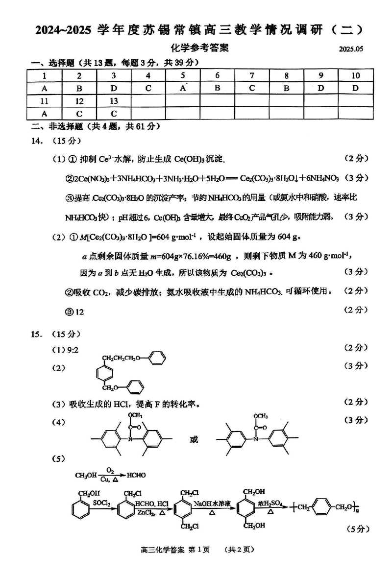 2024-2025学年苏锡常镇四市高三5月教学情况调研(二)化学考试已于近日开考,为方便考生考后及时查看考试情况,查漏补缺、弥补不足,本文整理了试题答案解析相关信息!